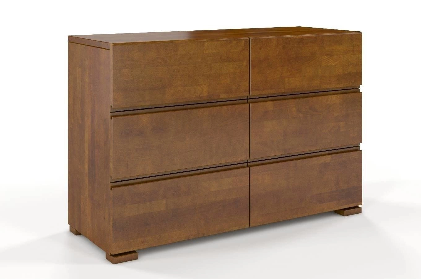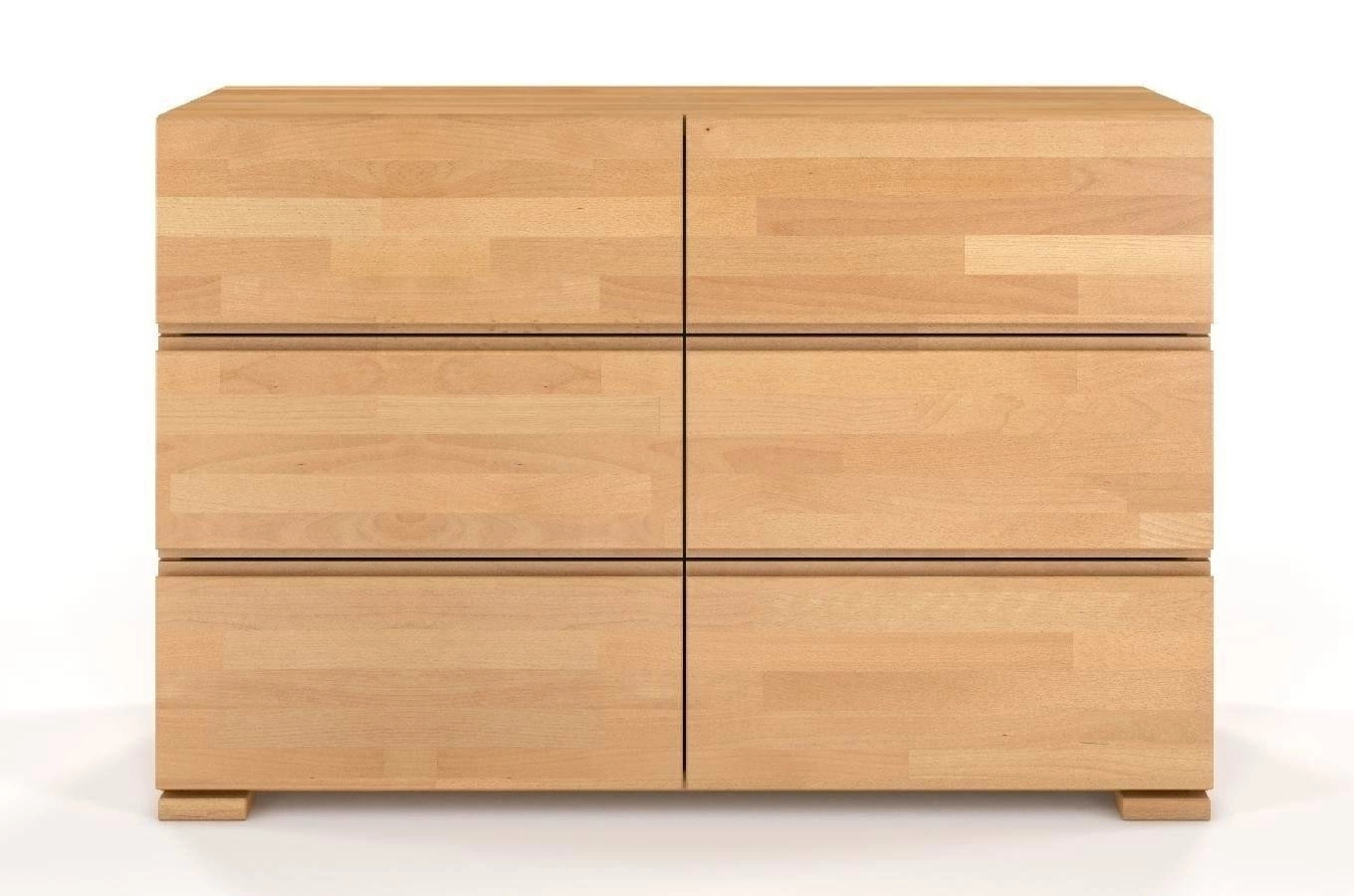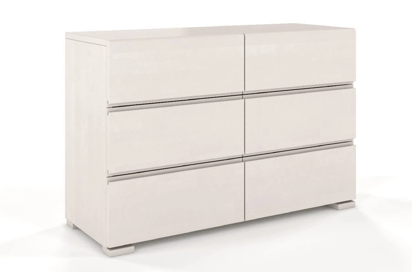 Dřevěná komoda se zásuvkami Vestre 120 cm od značky SKANDICA je kombinací přírodního bukového dřeva, praktičnosti a skandinávského stylu. Nábytek o šířce 120 cm, vybavený 6 prostornými zásuvkami, se skvěle hodí jak do obývacího pokoje, tak i do ložnice. Díky možnosti personalizace barvy se komoda dokonale přizpůsobí individuálním potřebám vašeho interiéru.