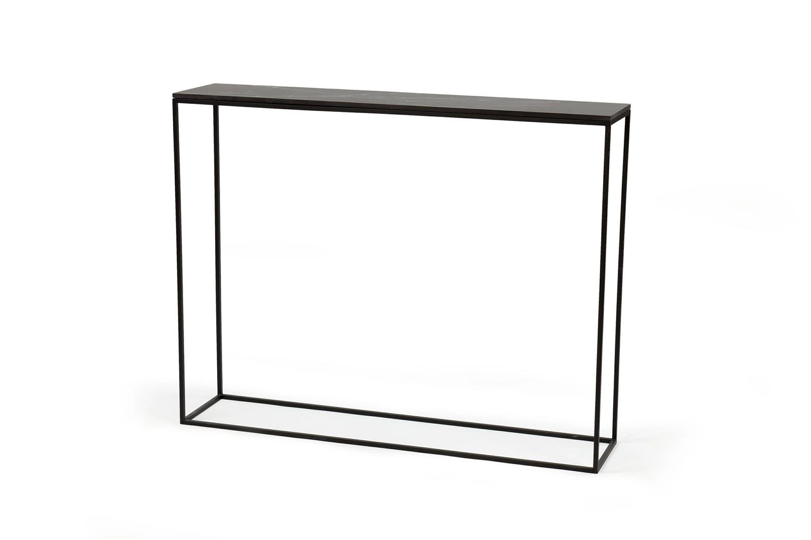 Konzole STAM 200 od značky NORDIFRA je moderní konzolový stolek o šířce 100 cm, vyrobený z odolného kovu a doplněný matnou, tmavě šedou deskou. Jeho úzká konstrukce (hloubka pouhých 22 cm) zajišťuje, že je ideální jako konzole do předsíně, odkládací stolek ke zdi v obývacím pokoji nebo praktický toaletní stolek pod zrcadlo. Čisté linie, hladká čelní strana a pevná černá podnož na čtyřech nohách odpovídají aktuálním trendům moderního designu a zároveň nabízí funkčnost, kterou potřebujete každý den.