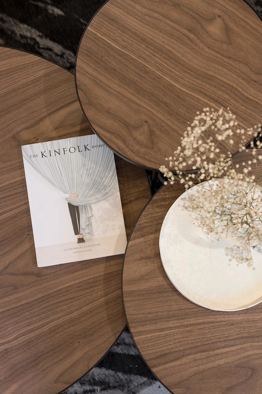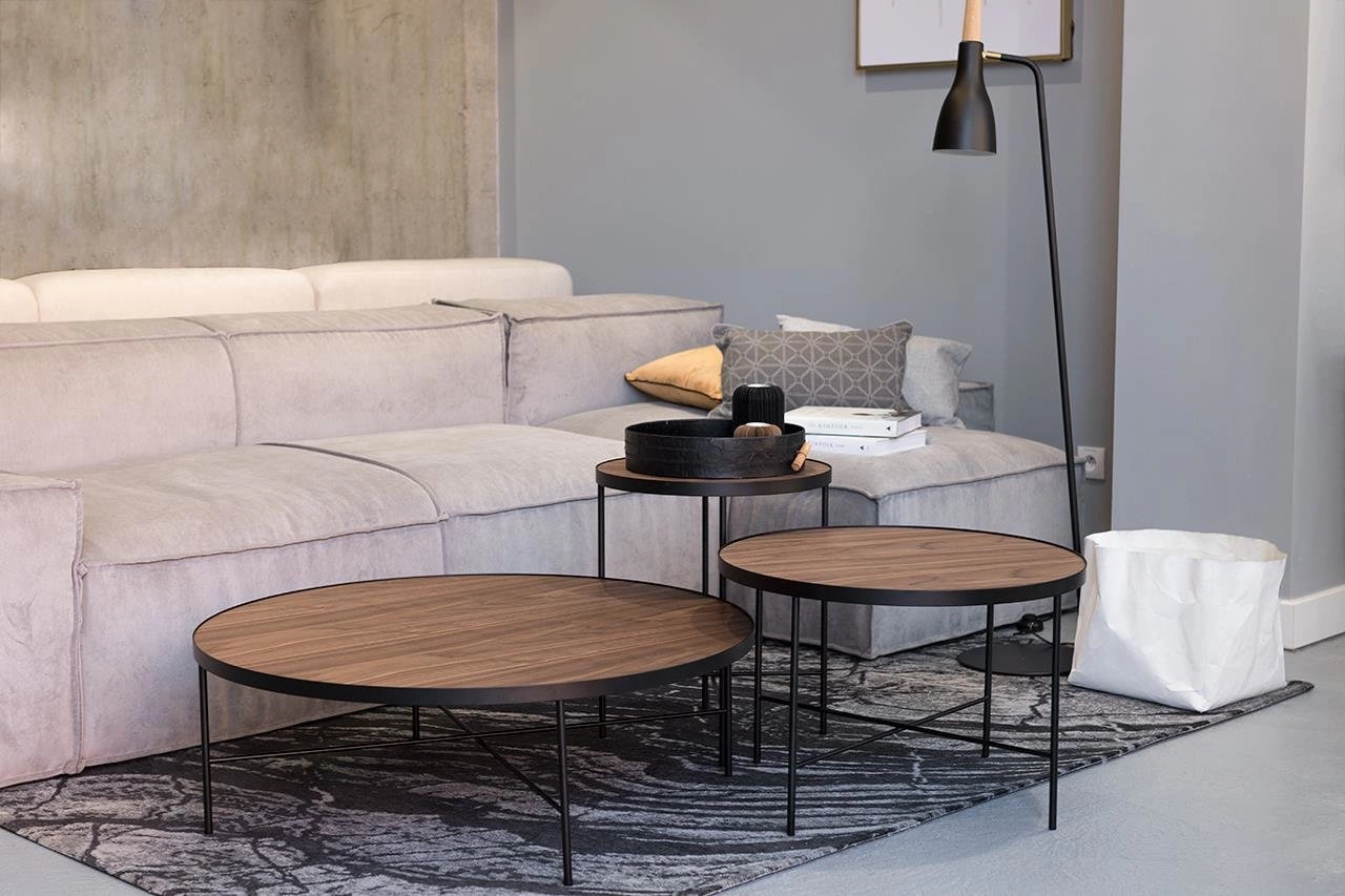 Jednoduchý, ale výrazný design zajišťuje, že konferenční stolek TRE 430 perfektně doplní moderní interiéry. Kulatá matná deska z dýhy amerického ořechu dodává eleganci a útulnost, zatímco vzdušná konstrukce na kovových nohách podtrhuje industriální charakter. Univerzální barevné provedení (hnědá deska, černá podnož) umožňuje snadno sladit tento dřevěný konferenční stolek s interiérem v loftovém, klasickém i moderním stylu.Funkčnost a pohodlí – ideální stolek do obýváku