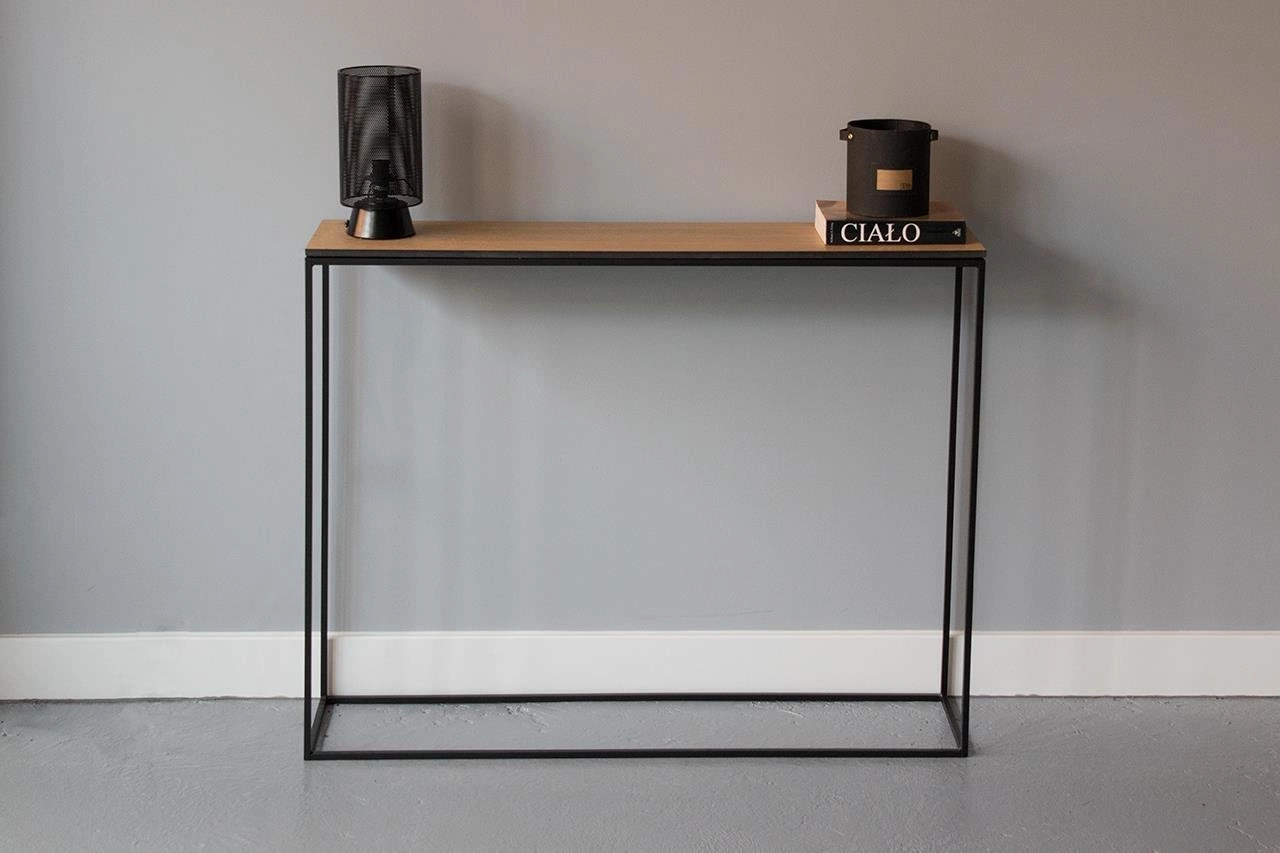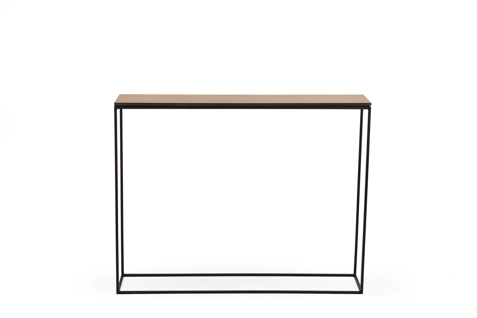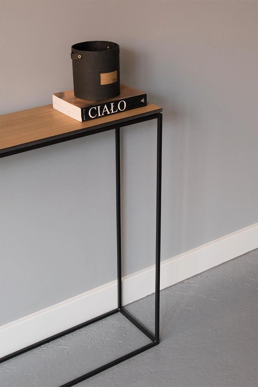 Jedním z nejdůležitějších rysů skandinávského stylu je jeho vyváženost. Další je spojení s přírodou, které se projevuje v materiálech použitých k výrobě nábytku. Horní deska a rám z přírodního dubu tyto dvě vlastnosti skvěle kombinují. ROZMĚRY: Výška: 78 cm Hloubka: 22 cm Šířka: 100 cm MATERIÁL: Kov, práškově lakovaný. Horní deska s přírodní dubovou dýhou. Hmotnost: 9,5,