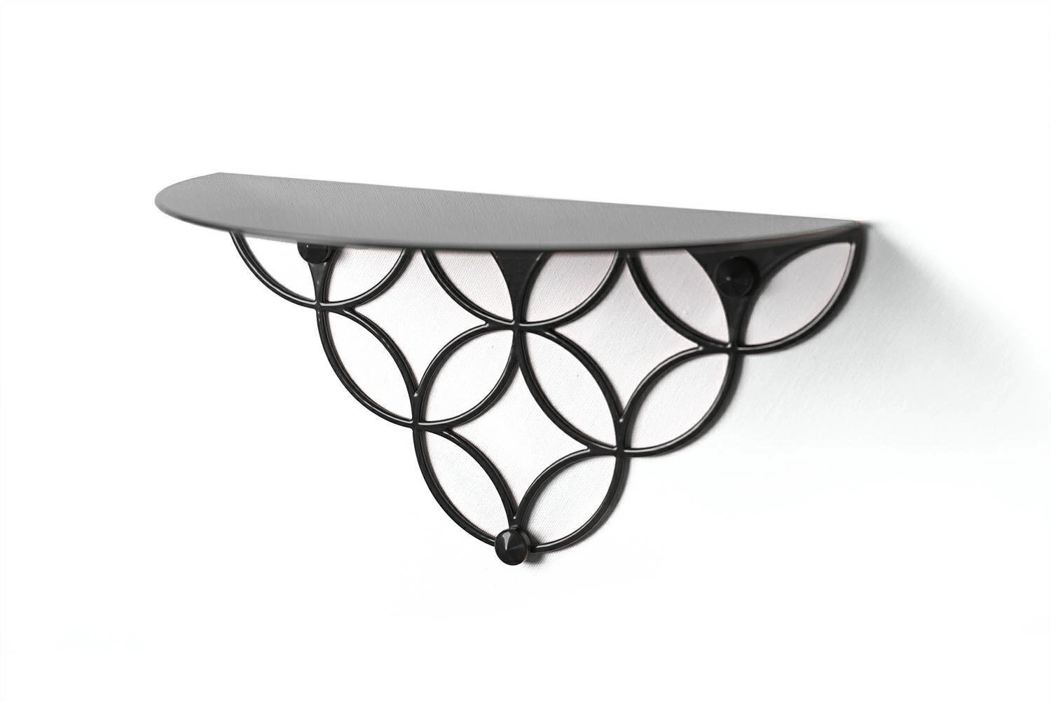Geometrická nástěnná police Holo je určena těm, kteří ocení originální doplňky a promyšlenou organizaci prostoru. Ocelová konstrukce zajišťuje dlouhou životnost a přitom působí na stěně lehce a elegantně. Matný černý povrch krásně zvýrazňuje tvar police a podtrhuje moderní charakter vašeho interiéru. Police můžete zavěsit samostatně nebo zkombinovat více modulů a vytvořit si vlastní unikátní kompozici.