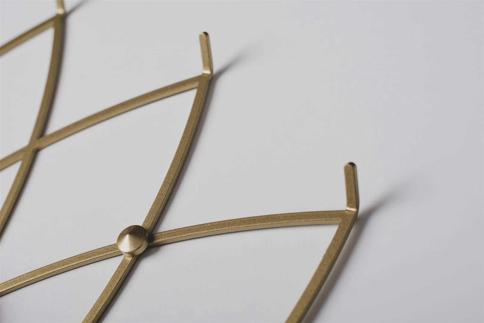 Nástěnný věšák Lotos POLYHEDRA doporučujeme těm, kteří hledají originální doplňky do moderních interiérů. Jeho zlaté provedení skvěle ladí s trendy v glamour, moderním i minimalistickém stylu. Je to řešení pro každého, kdo očekává od věšáku nejen funkčnost, ale i výrazný vzhled, který podtrhne jedinečný charakter domova.