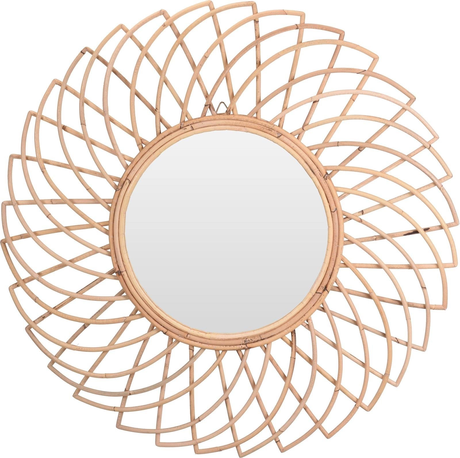 Kulaté zrcadlo boho Intesi Burgos je stylovým doplňkem do předsíně i obývacího pokoje, který zaujme přirozeným designem a působivým průměrem 90 cm. Vyrobené z kvalitního proutí a skla, spojuje praktickou funkci nástěnného zrcadla s dekorativním prvkem v boho stylu. Jeho přírodní barva a ručně pletený rám z něj dělají jedinečný doplněk, který dodá interiéru útulnost a originální charakter.