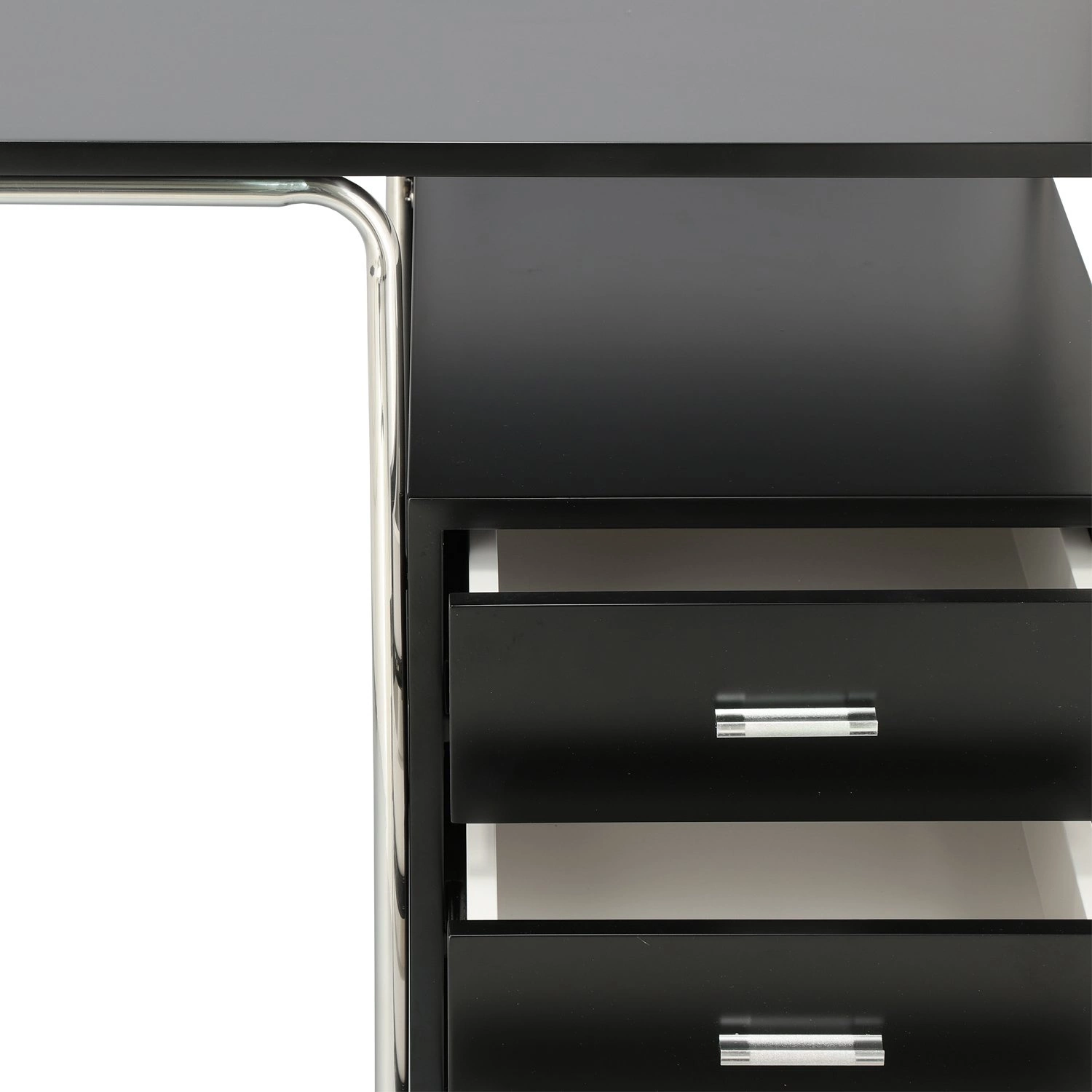 Psací stůl Thon od značky Intesi je kombinací moderního stylu a praktičnosti – navržený s ohledem na efektivní práci v domácí pracovně, kanceláři nebo studentském pokoji. Lakovaný černý povrch s vysokým leskem o šířce 120 cm a hloubce 60 cm poskytuje pohodlný pracovní prostor, zatímco chromovaná základna dodává celku elegantní vzhled. Stůl je vybaven třemi prostornými zásuvkami, které vám umožní přehledně uspořádat dokumenty i potřebné kancelářské doplňky, takže snadněji udržíte pořádek na pracovní desce.