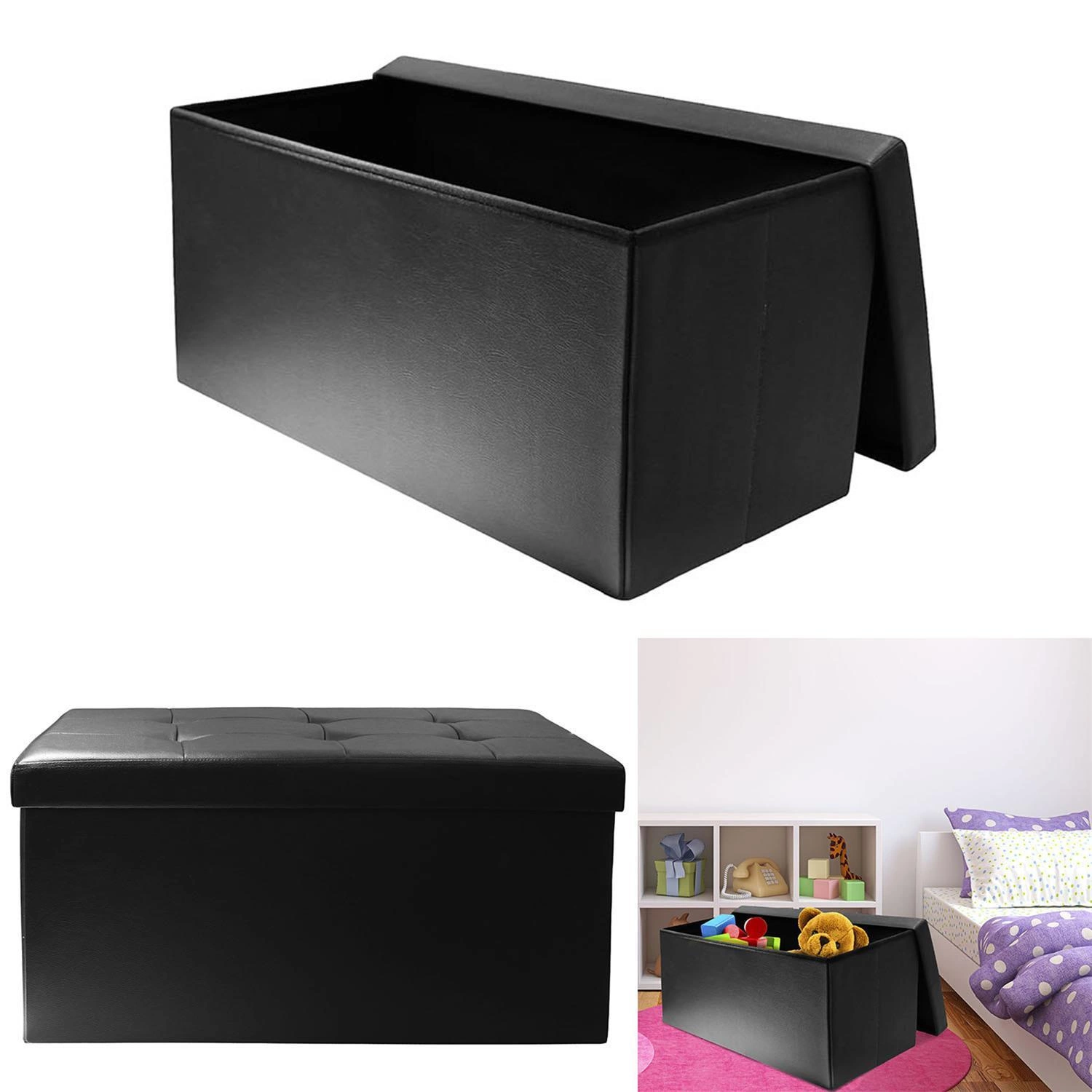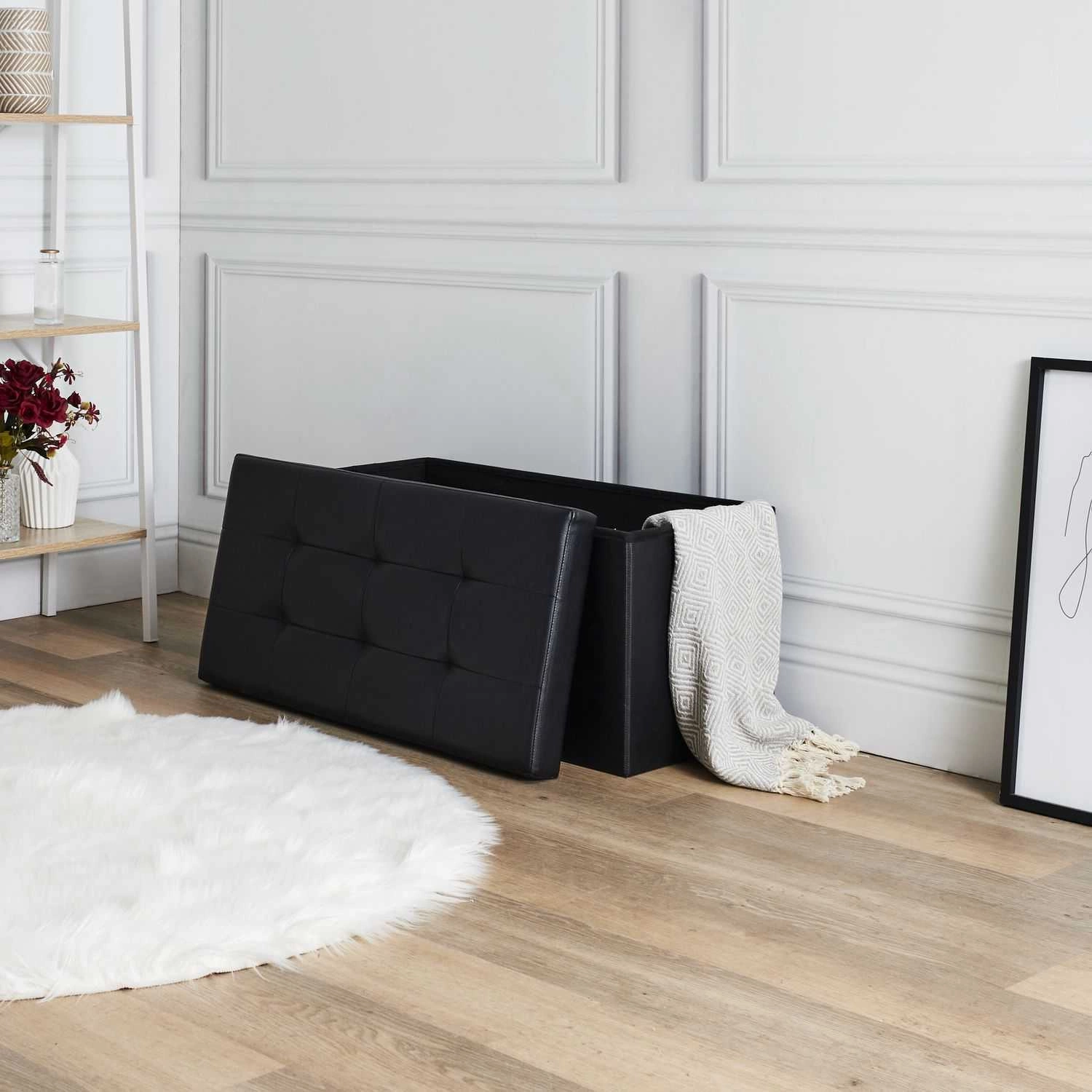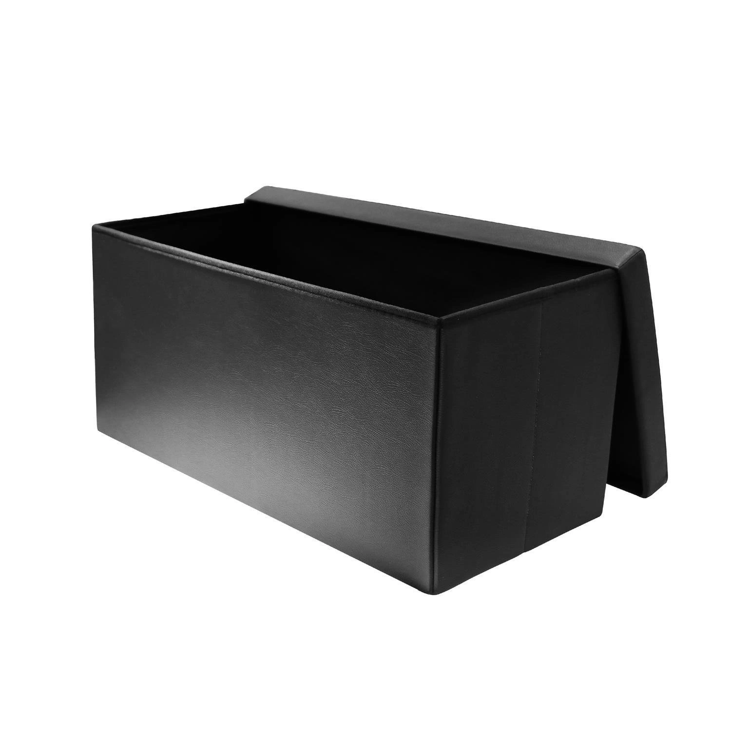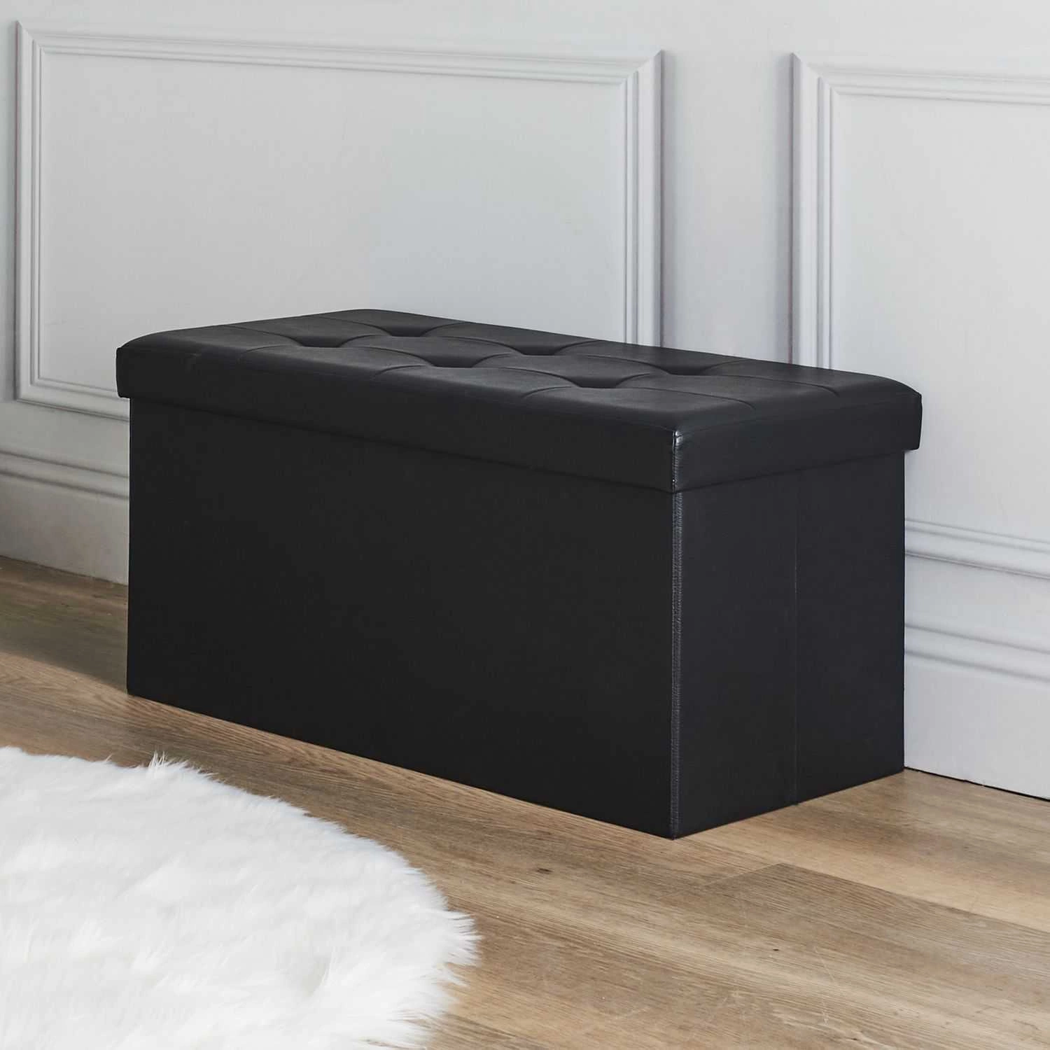 Skládací černá taburetka Intesi Velse s úložným prostorem z ekokůže obdélníková do předsíně a obýváku