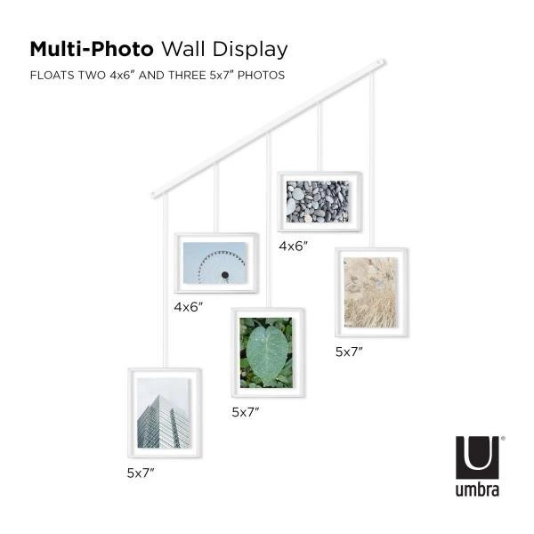 Bílá závěsná multirámeček na fotografie Umbra Exhibit je designový nástěnný rámeček ve skandinávském stylu, vyrobený z odolného kovu. Tento rámeček umožňuje vystavit až pět fotografií najednou ve dvou oblíbených formátech – 10x15 cm a 13x18 cm, což vytváří originální koláž rodinných vzpomínek nebo inspirativních snímků. Promyšlená konstrukce multirámečku zaručuje elegantní vzhled jak v obývacím pokoji, ložnici, tak i v domácí pracovně, a jeho bílá barva se skvěle hodí do moderních, světlých interiérů.