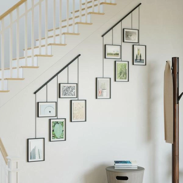 Multirám Exhibit nabízí možnost libovolného posouvání a změny uspořádání rámečků, takže si expozici snadno přizpůsobíte aktuálním potřebám i prostoru. Ideální řešení na stěnu u schodiště, v chodbě nebo nad sedačku, kde záleží jak na estetice, tak na funkčnosti. Díky zavěšené konstrukci můžete svou galerii fotografií pravidelně obměňovat bez obav o stav stěny.