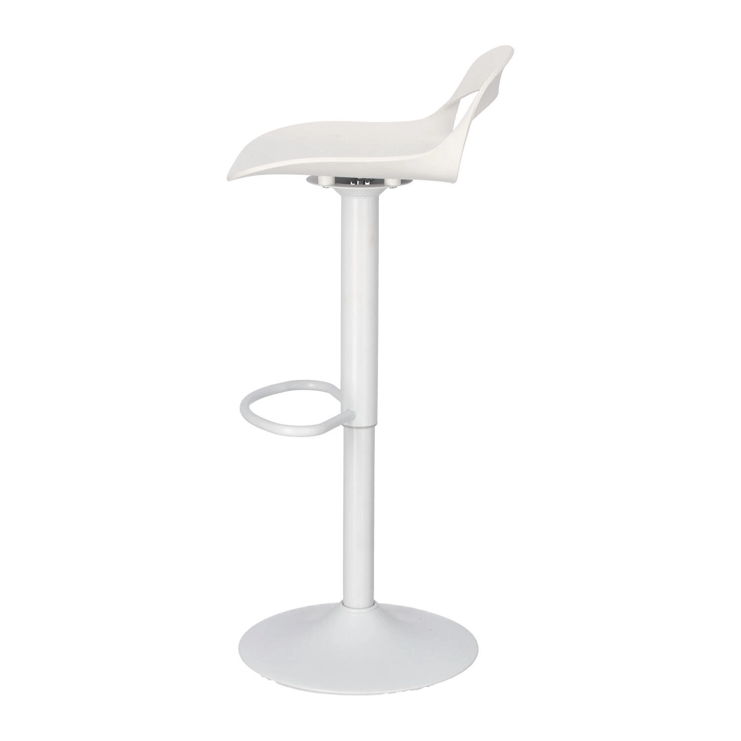 Hoker s opěrkou s nastavitelnou výškou Nest Simplet od značky Simplet je moderní barová stolička v matné bílé barvě, vyrobená z odolného plastu a stabilní kovové základny. Díky možnosti nastavení výšky sedáku (od 61 do 81 cm) a otočné funkci je ideální jak k kuchyňskému ostrůvku, tak do domácího baru. Minimalistický tvar a praktická opěrka zajišťují pohodlí i styl v každé moderní kuchyni nebo jídelně.