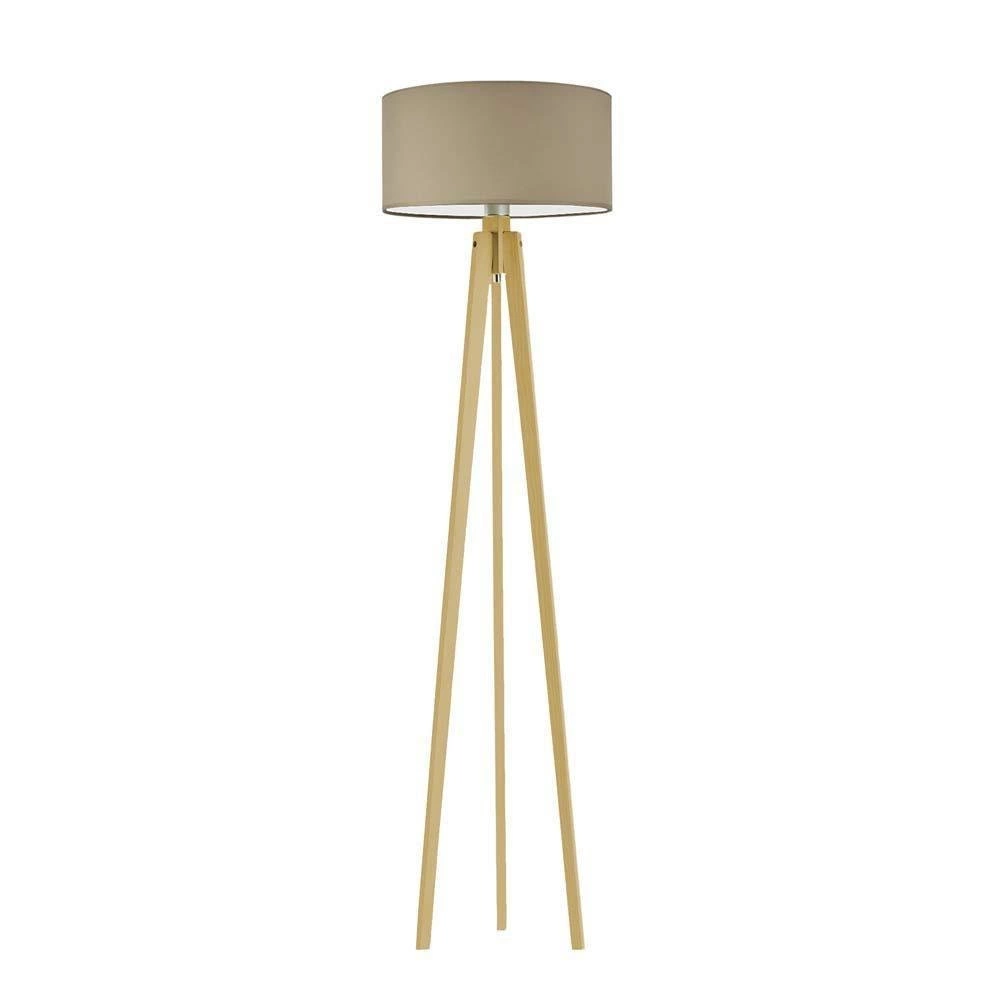 Stojací lampa do obýváku Miami béžová s textilním stínidlem na dubovém trojnožce Lysne personalizovaná