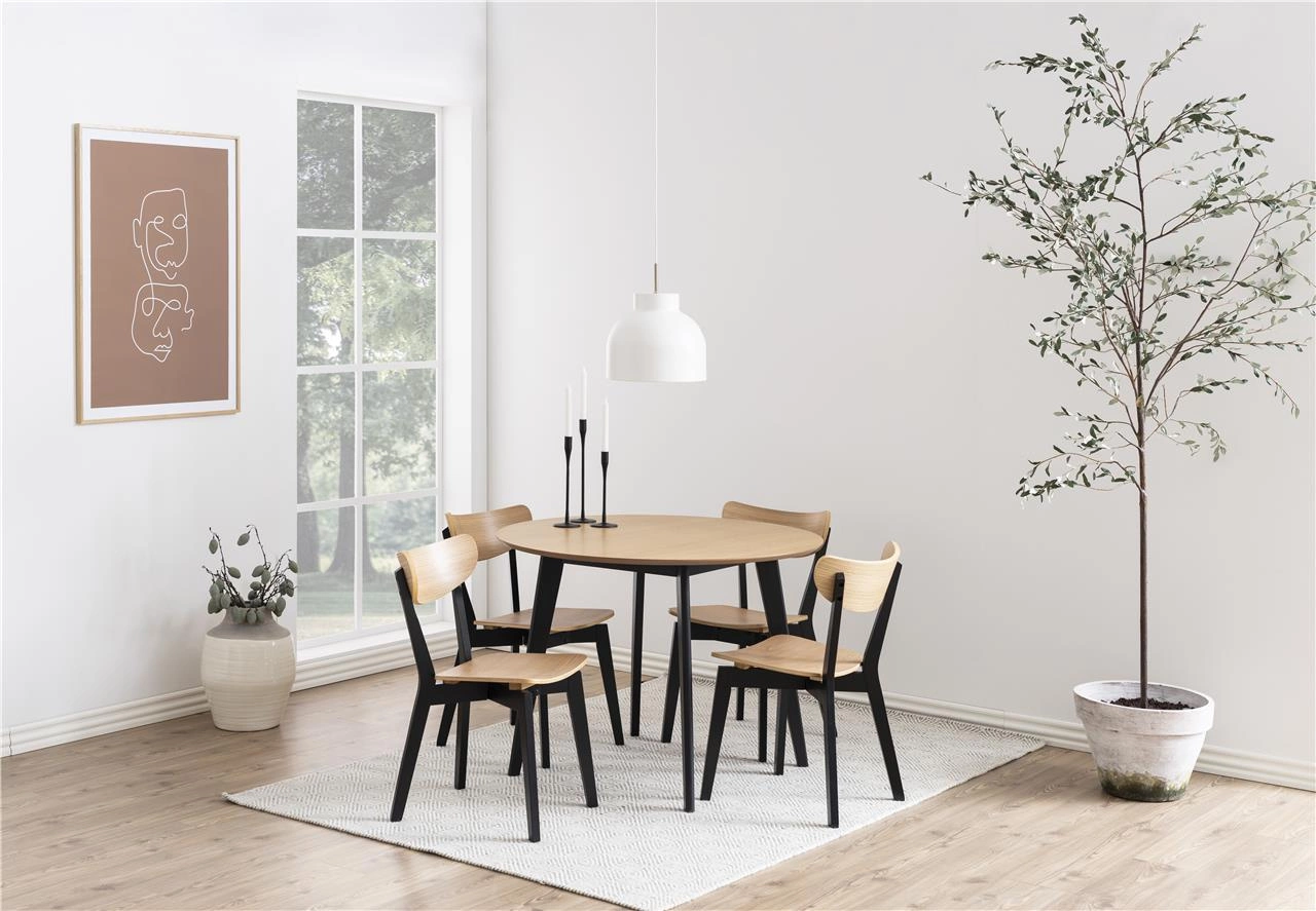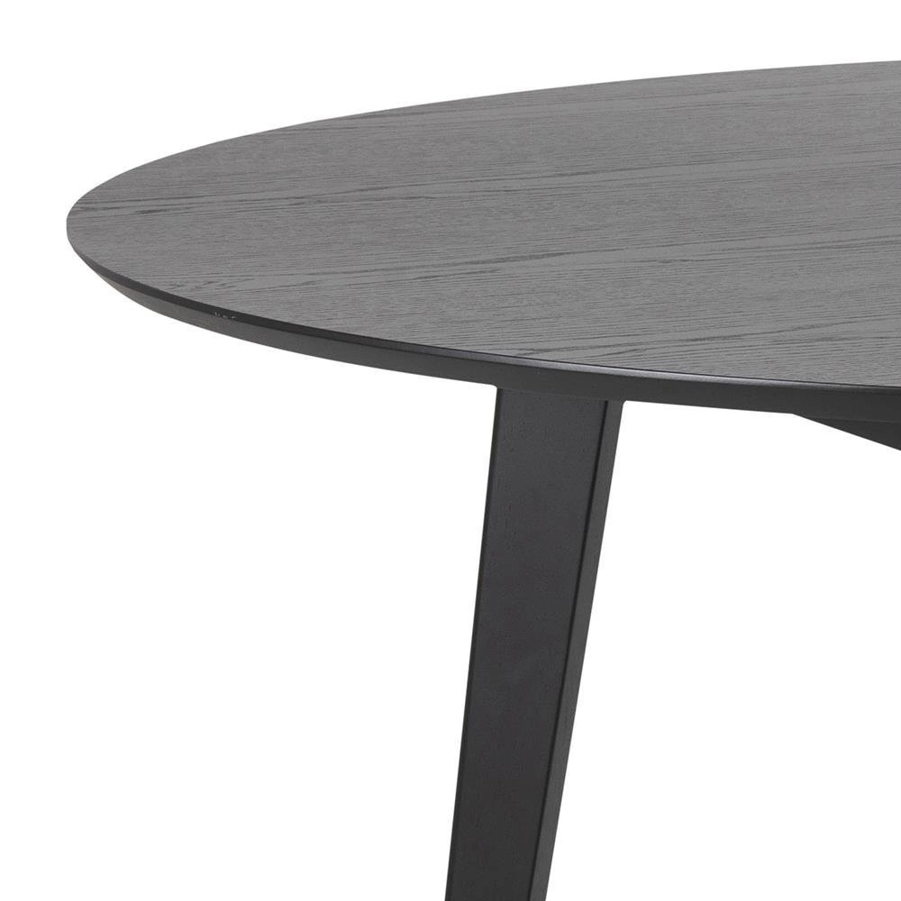 Kulatý jídelní stůl Roxby od značky Actona je esencí skandinávské elegance v moderním pojetí. Model o průměru 140 cm, vyrobený z černé dubové dýhy a přírodního dřeva, zaujme minimalistickým tvarem a matným povrchem. Stabilní konstrukce na čtyřech nohách zajišťuje pohodlné používání a ušlechtilá černá barva dělá ze stolu ústřední bod každé jídelny, obývacího pokoje nebo kuchyně.