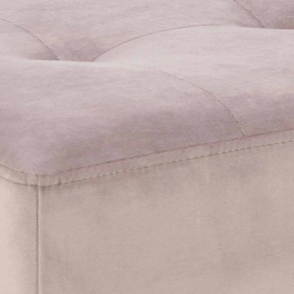 Lavice v předsíni Glory je pohodlným místem nejen pro obouvání. Tento kus nábytku je vybaven mimořádně příjemným, měkkým sedákem z pěny, čalouněným velurovou látkou v měděném odstínu, která je příjemná na dotek. Zajímavé prošívání na sedáku dodává lavici charakter ve stylu glamour. Látka použitá na čalounění tohoto kusu nábytku je VIC copper 70. Celek stojí na vysokých, zužujících se kovových nohách s práškovým lakováním. Lavička může být sedátkem v čekárně, lavičkou pro děti nebo lavičkou v hotelové hale. Hmotnost lavičky je pouhých 8,3 kg.