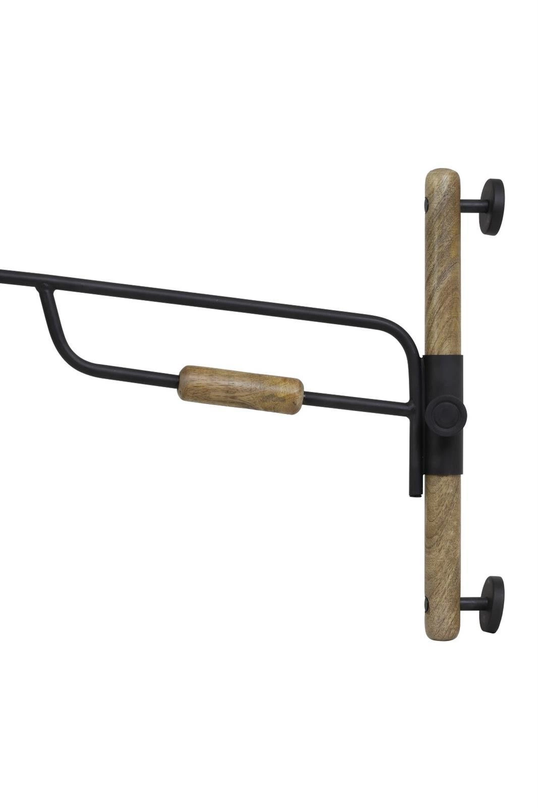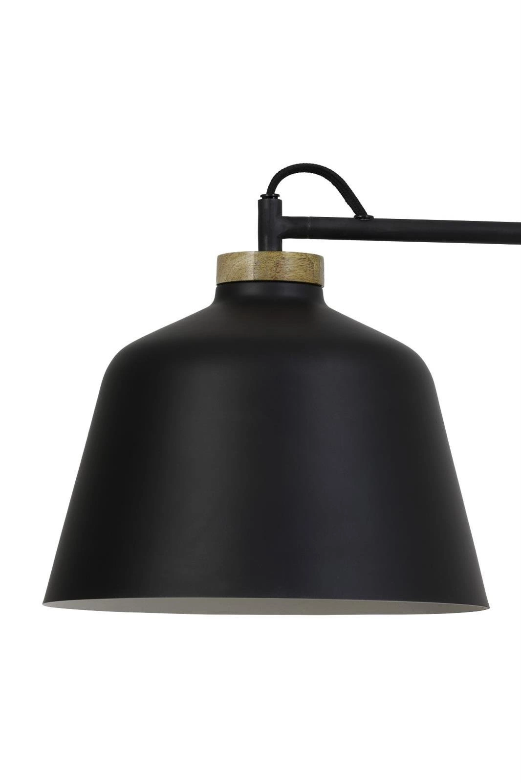 Nástěnné svítidlo v podkrovním stylu je nejen bodové svítidlo, ale také instalace, která ozdobí stěnu v ložnici nebo obývacím pokoji. Kovové černé stínidlo je nainstalováno na černém kovovém dlouhém rámu. Dřevěný motiv na horní části stínidla a na prvku přiléhajícím ke stěně odkazuje na přírodu. Kabel svítidla je skryt ve spodním držáku svítidla, takže při instalaci nástěnného svítidla není vidět.