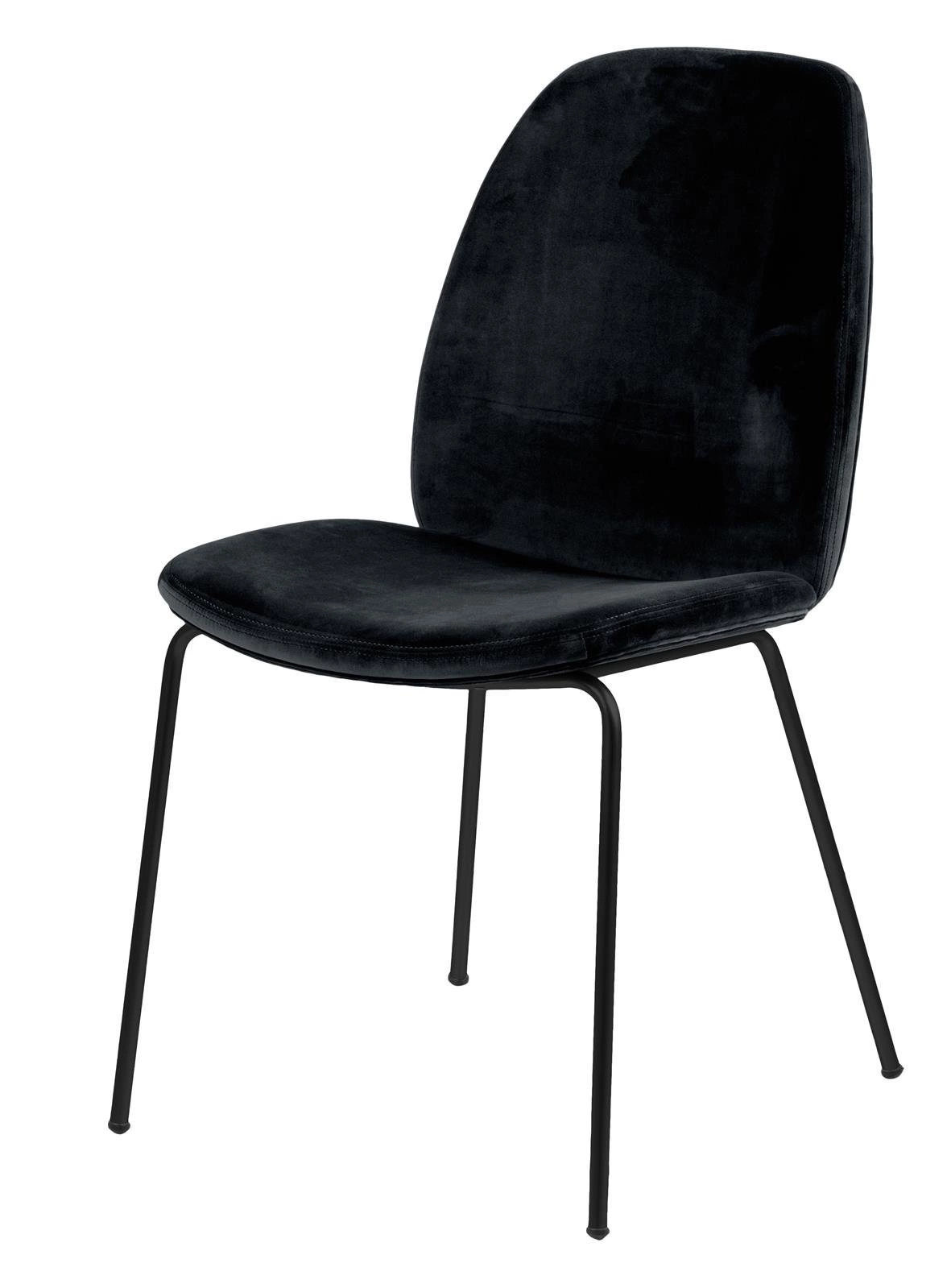 Čalouněná židle Carmen představuje esenci současné elegance. Její sametová, černá látka navozuje dojem luxusu a zároveň je příjemná na dotek. Moderní, čisté linie a jemně zakřivené opěradlo dodávají židli lehkost, díky čemuž se perfektně hodí jak do glamour jídelny, tak i do minimalistických a moderních interiérů. Kovové nohy lakované na černo dokonale ladí s čalouněním a dodávají celku výjimečný šmrnc.