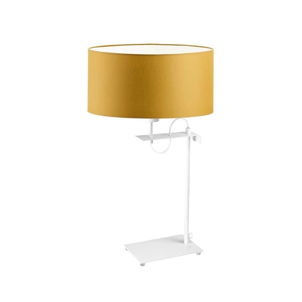 Noční lampička do ložnice Alaska moderní žlutá s látkovým stínidlem na bílém podstavci 55 cm