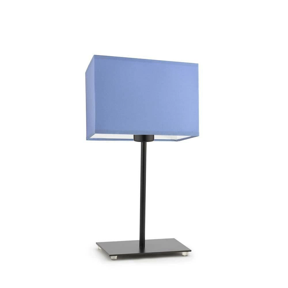 Noční lampička do ložnice AMALFI moderní modrá s látkovým stínidlem na černé konstrukci