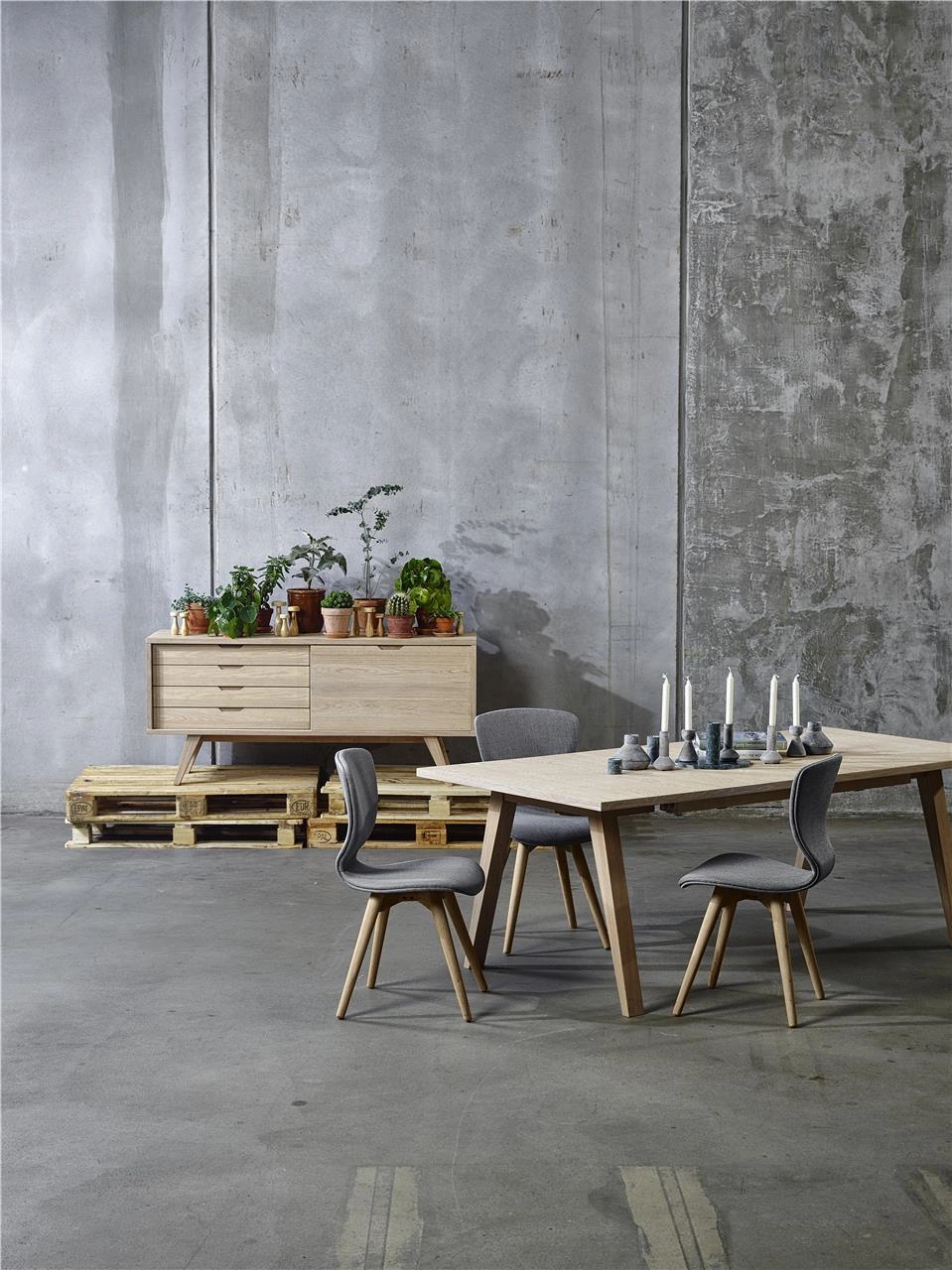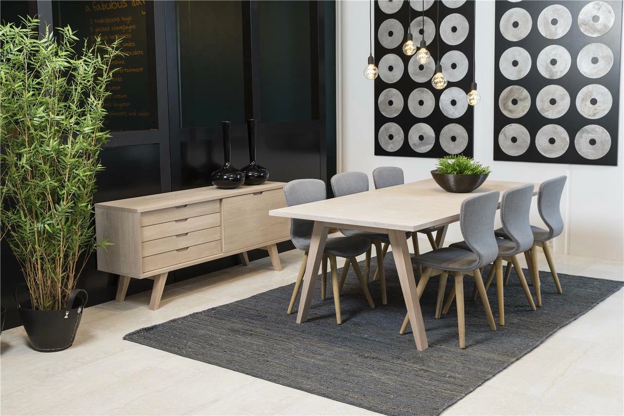 Komoda A-line bělený dub skandinávská se zásuvkami 160 cm na nožkách do obýváku Actona