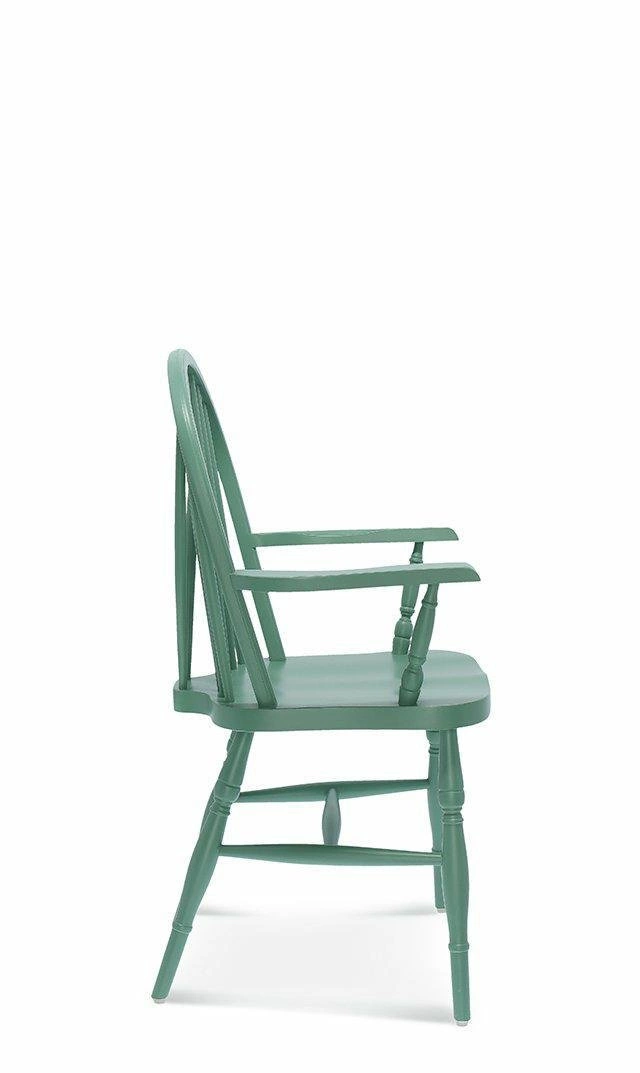 Model Windsor je navržen s ohledem na dlouhé rodinné večeře a posezení u stolu. Ergonomické opěradlo a praktické područky zajišťují maximální komfort i při delším sezení. Výška sedáku činí 46 cm, což znamená, že židle přirozeně ladí s většinou jídelních a kuchyňských stolů. Díky pevné konstrukci z bukového dřeva unese Windsor zátěž až 120 kg a poskytuje tak bezpečí a dlouhou životnost.