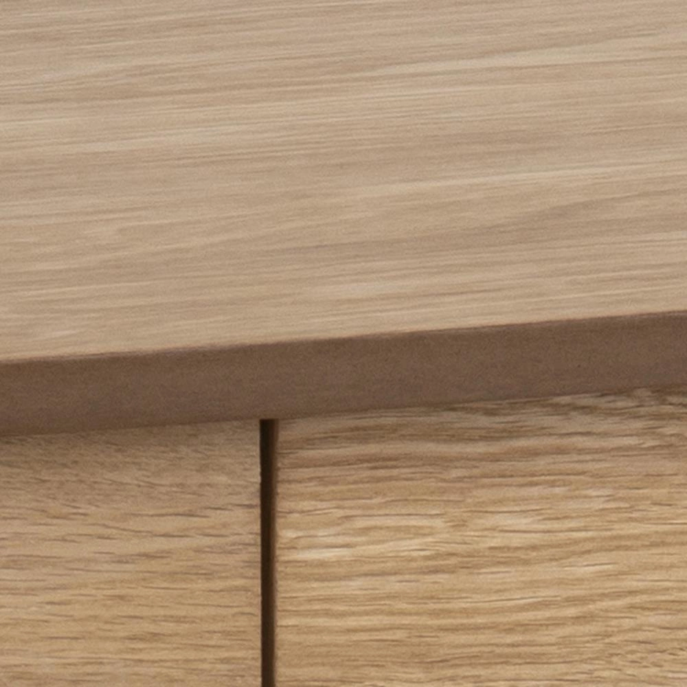 Deska stolu Woodstock je vyrobena z MDF desky pokryté dubovou dýhou. Díky použití těchto materiálů je stůl odolný proti poškození a drobným škrábancům. Deska MDF neabsorbuje nečistoty a snadno se udržuje v čistotě. Stůl stojí na vysokých, mírně zkosených nohách z masivního dubového dřeva. Podpírají obdélníkovou širokou horní část, jejíž spodní část je vybavena prostornou zásuvkou, která je ideální pro uložení potřebného příslušenství. Přírodní barva stolu v kombinaci s jeho minimalistickým tvarem z něj činí ideální volbu pro moderní interiéry, zejména ty zařízené ve skandinávském stylu. Hmotnost stolu 15 kg