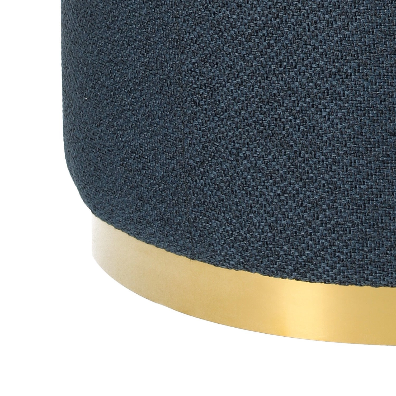Taburet Kung XL je elegantním doplňkem moderního interiéru. Vícerozměrné barvy tmavě mpdréhočalounění bylo dosaženo kombinací různých barevných nití při tkaní. Hustou látku s výraznou strukturou dokonale doplňuje elegantní zlatý kovový podstavec. Široký sedák šedého pufu ve tvaru válce o rozměrech 60 cm x 47 cm je ideální jako stylový doplněk do obývacího pokoje nebo ložnice, jako podnožka nebo pohodlný puf do předsíně.