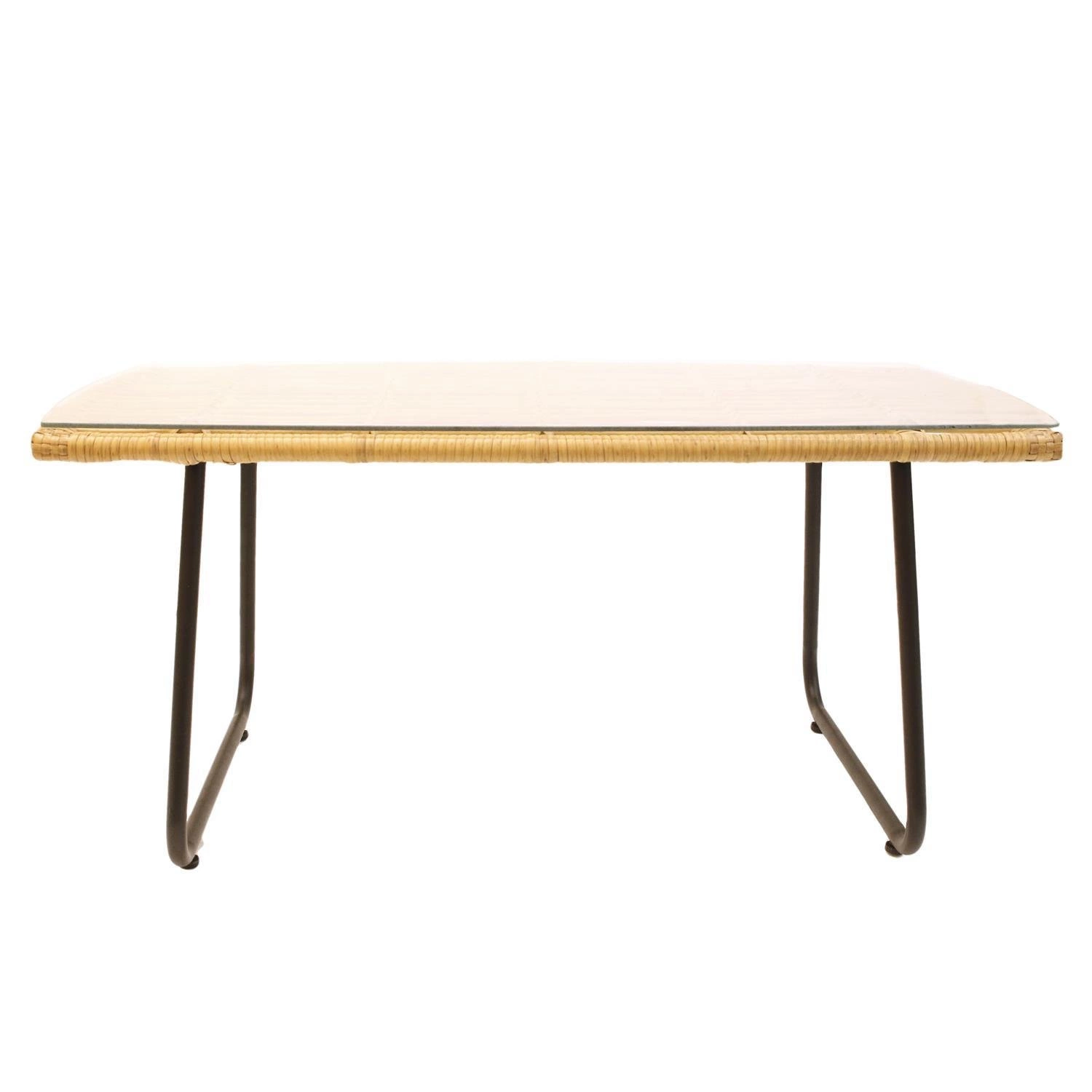 Deska stolu Surabaya je vyrobena z tvrzeného skla a plastu, který fantasticky kontrastuje s kovovým rámem a policí. Podstavec je vyroben z ocelových nohou ve tvaru ližiny a černé barvě - díky použití práškového lakování je povrch hladký a jednolitý. Nohy stolu mají protiskluzové koncovky.