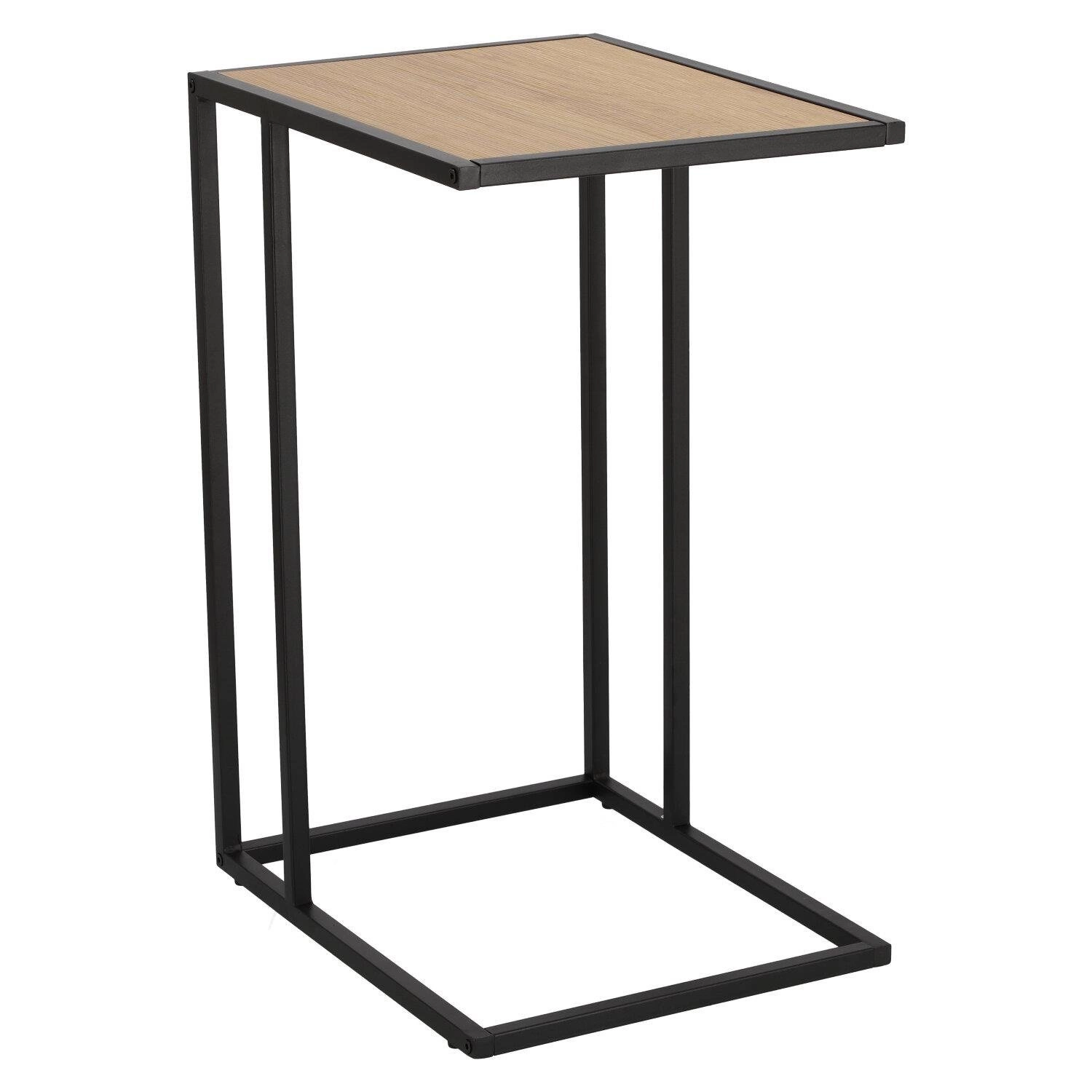 Stolek na kávu Seaford obdélníkový moderní dubový s policí do obývacího pokoje Intesi je stylovou a praktickou volbou pro každého, kdo si cení funkčnosti a elegantního designu. Vyroben z odolné MDF desky v přírodním odstínu dubu a kovu lakovaného do hluboké černé barvy. Deska o rozměrech 35×43 cm nabízí pohodlný prostor na šálek kávy, dekorace nebo knihy, zatímco přídavná police umožňuje udržet pořádek v obývacím pokoji. Výška 63 cm zajišťuje, že stolek perfektně poslouží jak u pohovky, tak jako odkládací stolek vedle křesla.
