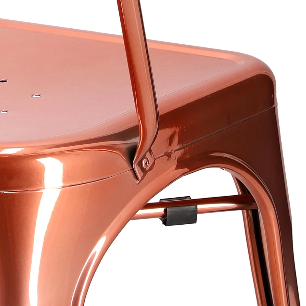 Židle Paris od značky D2.DESIGN je kovová jídelní židle v výrazném měděném odstínu, inspirovaná ikonickým designem Tolix. Tento model se vyznačuje robustní konstrukcí, lesklým povrchem a možností stohování, díky čemuž je ideální nejen do domácích, ale i komerčních interiérů. Štíhlý tvar (výška 84 cm, šířka 45,5 cm, hloubka 52 cm) a pohodlný sedák ve výšce 44 cm zajišťují komfort při sezení a stylový vzhled v loftových, moderních i glamour aranžmá.