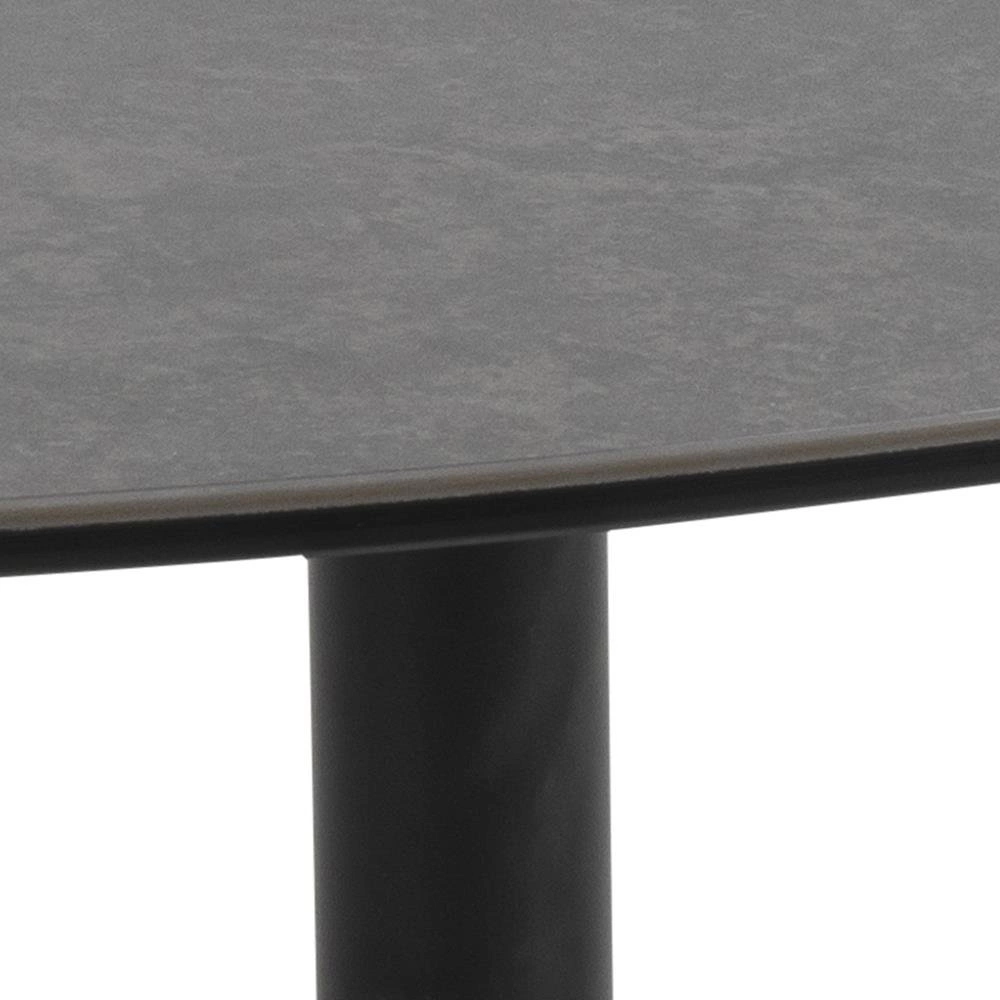 Stolek na kávu oválný černý Barnsley L moderní skleněno-keramický do obývacího pokoje Actona je spojením elegance a funkčnosti v mimořádně stylovém provedení. Oválná deska o rozměrech 100×95 cm je vyrobena z odolné keramiky a skla, což zaručuje dlouhou životnost a snadné čištění. Stabilní kovová podstava v hlubokém černém odstínu perfektně zapadá do moderních i glamour interiérů obývacího pokoje, a výška 41 cm dělá ze stolku Barnsley L skvělou volbu jako centrální bod relaxační zóny i jako praktický odkládací stolek.