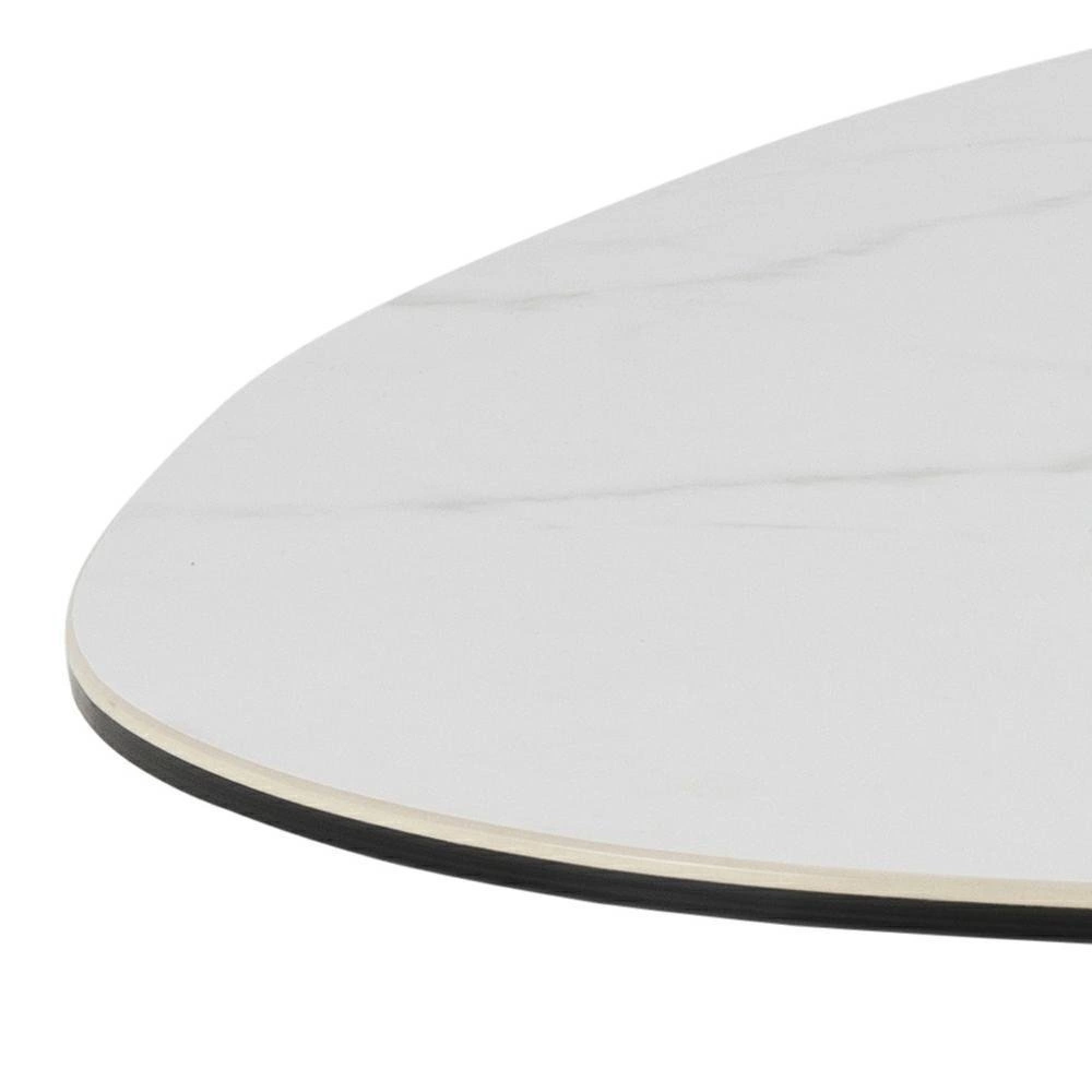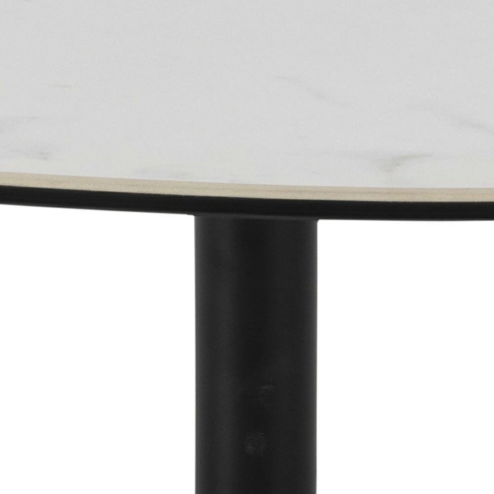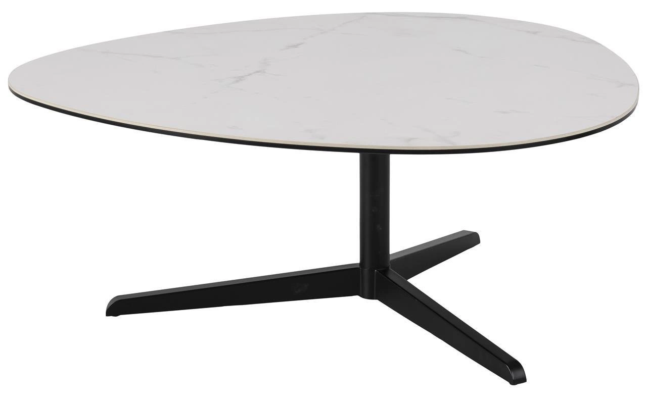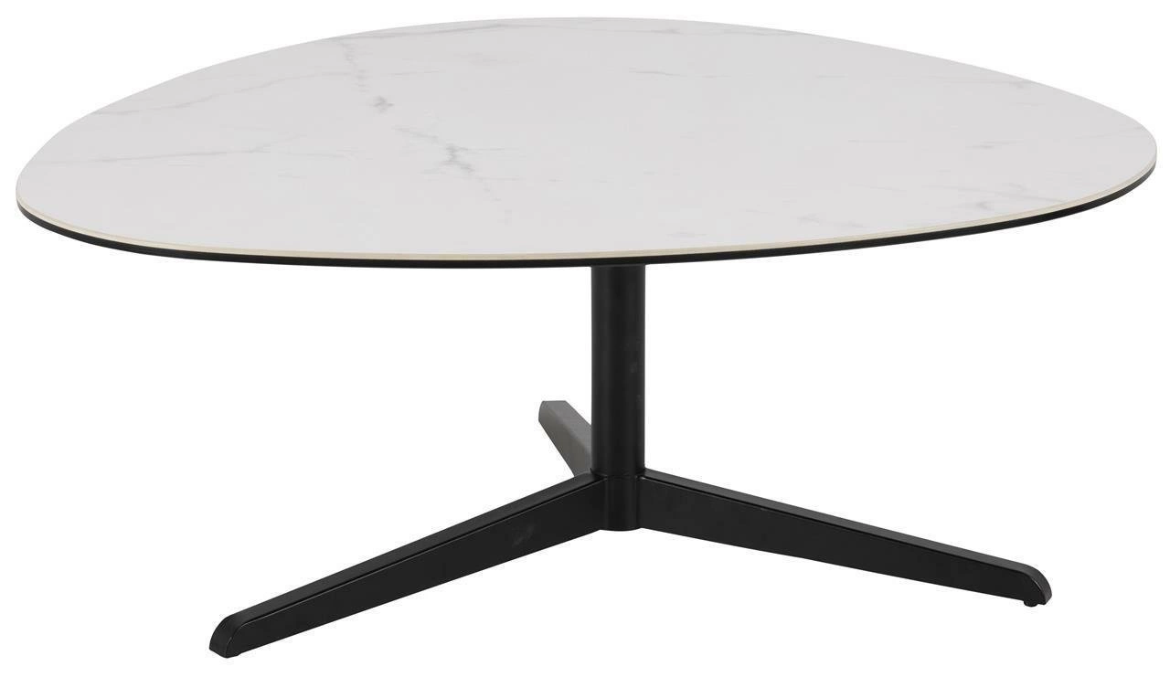 Nadčasový konferenční stolek Barnsley se skvěle hodí do moderních interiérů. Deska stolu v bílé barvě byla vyrobena z keramiky imitující mramor a sklo. Podstavec stolu je vyroben z kovu s černým práškovým nástřikem. Základna stolu je tvořena jednou nohou se třemi podpěrami ve spodní části