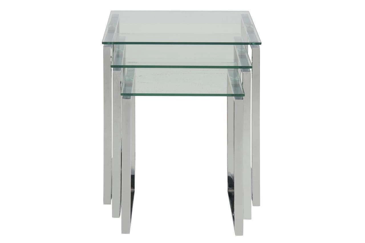 Sada Katrine poslouží jak jako elegantní konferenční stolek do obývacího pokoje, tak jako praktické pomocné stolky do dalších místností. Promyšlené rozměry a lehká, ale zároveň odolná konstrukce usnadňují manipulaci a umožňují snadnou změnu uspořádání. Průhledné skleněné desky podtrhnou moderní charakter interiéru a chromované prvky dodají punc luxusu. S touto sadou získáte nejen atraktivní dekoraci, ale hlavně funkčnost pro každý den. Sada skleněných konferenčních stolků Katrine je ideální volbou pro ty, kteří hledají originální, moderní nábytek do obývacího pokoje, oceňovaný pro svou odolnost, styl a univerzální využití.