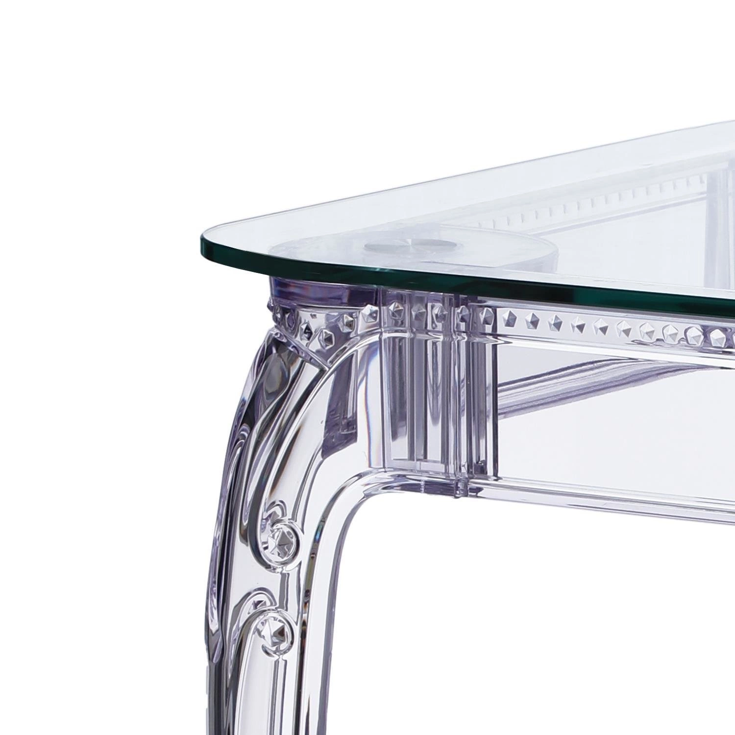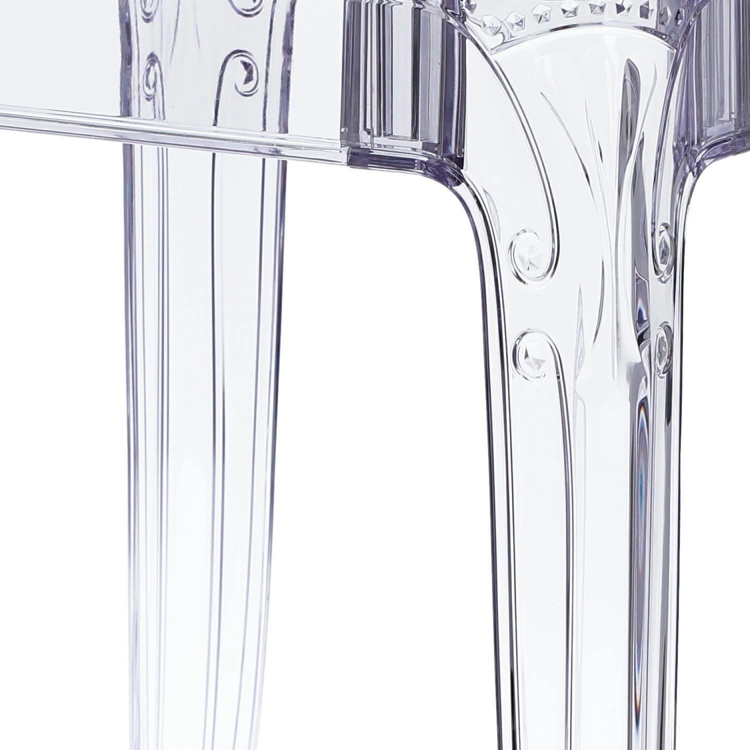 Ghost je jídelní stůl, jehož průhledná konstrukce opticky zvětšuje i menší místnosti. Díky čirému skle a nohám z polykarbonátu prochází světlo volně skrz stůl a dodává interiéru jedinečnou lehkost. Takový skleněný stůl ve stylu glamour se perfektně hodí také do obývacího pokoje nebo moderní kuchyně, kde je důležitý pocit vzdušnosti a svěžesti.