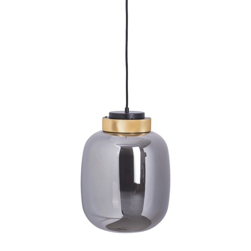 Minimalistický tvar skleněné koule v šedém odstínu, doplněný decentním zlatým detailem, se stává výraznou dekorací každého interiéru. Moderní charakter lampy BOOM podtrhuje žebrovaná mosazná rozeta a textilní černý kabel, který nejen skvěle vypadá, ale také zajišťuje dlouhou životnost svítidla. Jemné odlesky světla ve skle a zlatých prvcích vytvářejí útulnou a příjemnou atmosféru – ideální pro posezení u stolu nebo večerní relaxaci v obývacím pokoji.