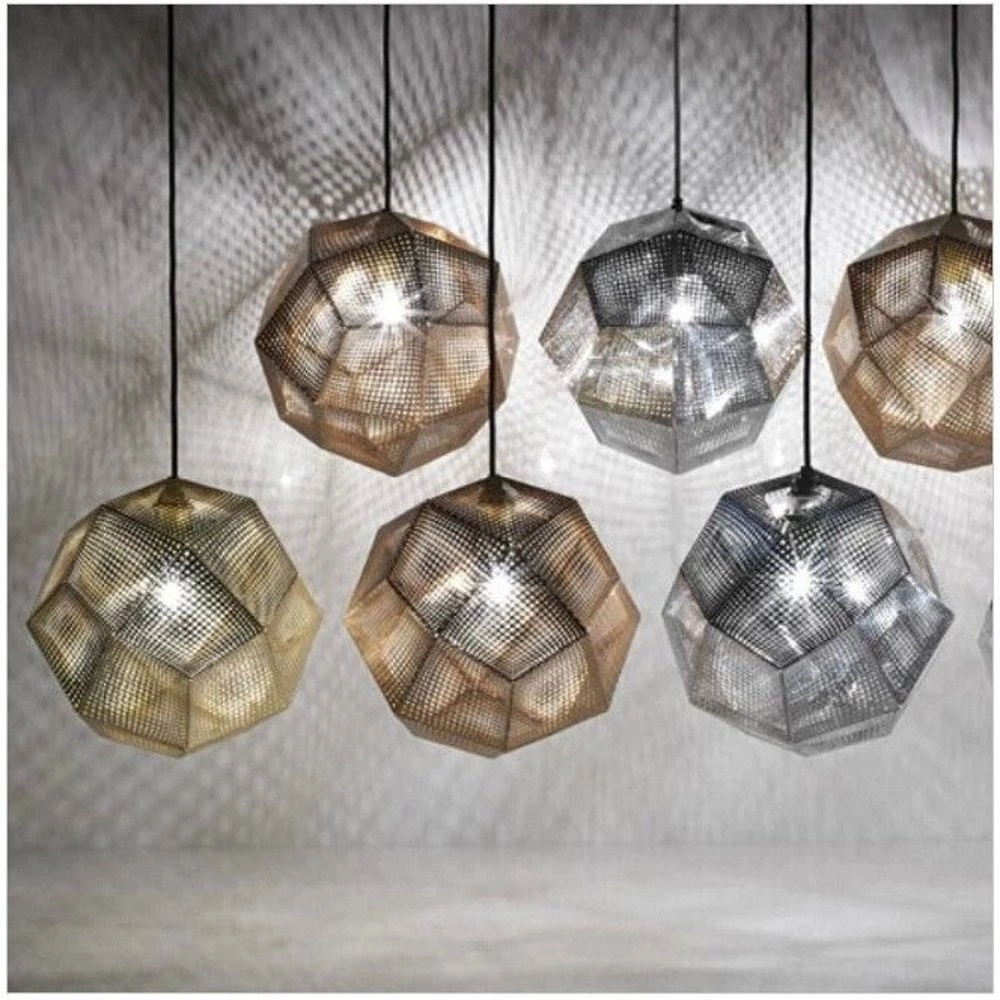 Závěsné svítidlo s geometrickým tvarem z nerezové oceli.