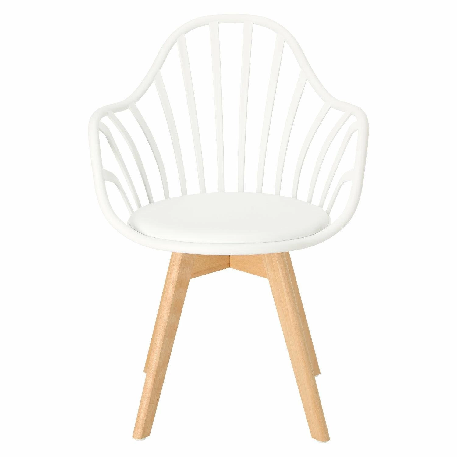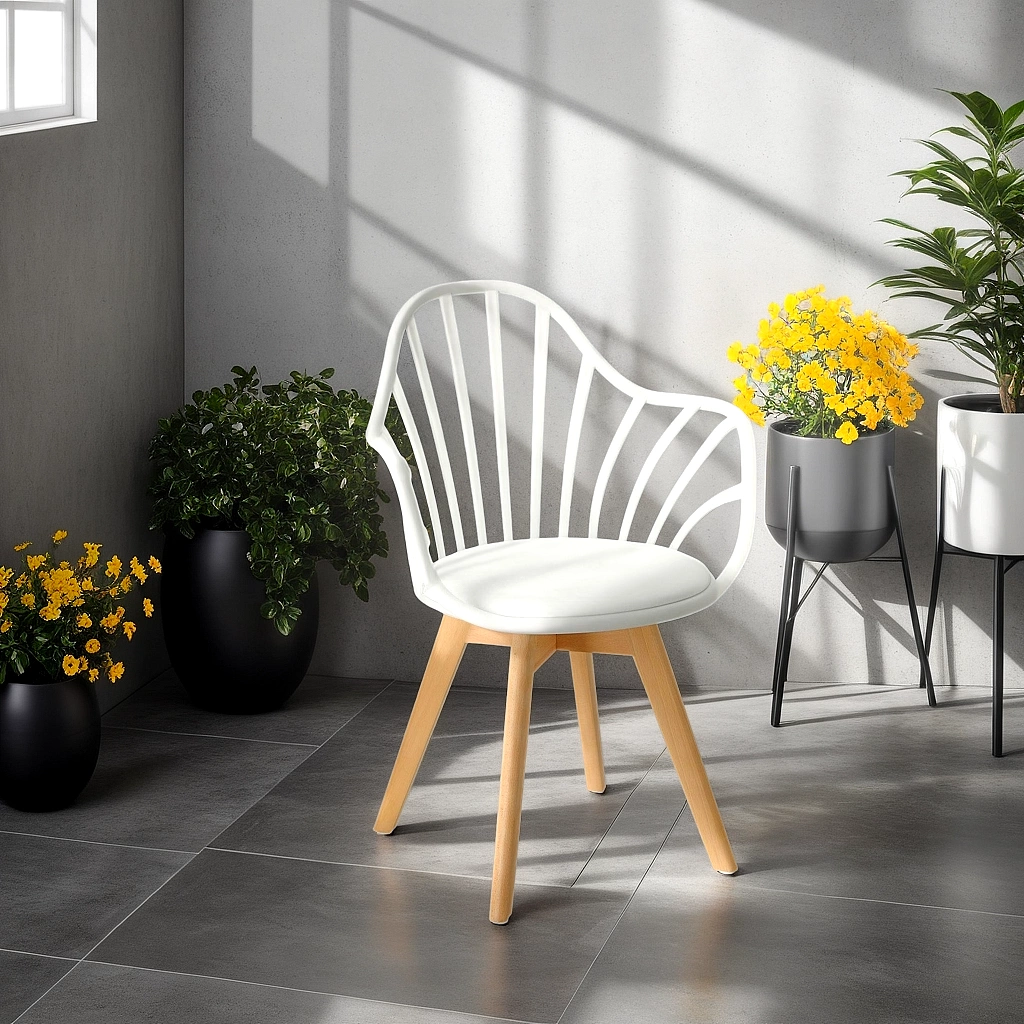 Židle Sirena se bude skvěle vyjímat v interiérech v moderním a skandinávském stylu. Opěradlo je vyrobeno z odolného polypropylenu v bílé barvě, který díky speciálním otvorům zajišťuje nepřetržité větrání. Tento materiál je mimořádně odolný vůči měnícím se podmínkám a mechanickému poškození. Snadno se také udržuje v čistotě. Sedák je vybaven měkkým, pohodlným polštářem potaženým ekokůží v bílé barvě. Nohy z bukového dřeva zajišťují dlouholetou životnost - jsou odolné proti mechanickému poškození. Nábytek je ideální do jídelny nebo jako kancelářská židle. Díky své nenápadné podobě se stane další ozdobou interiéru.