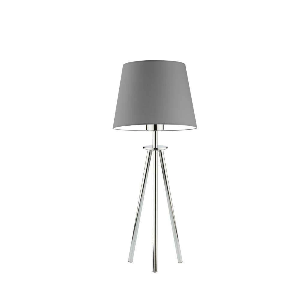 Noční lampička do ložnice BERGEN šedá s moderním kovovým stínidlem LYSNE chrom 50 cm