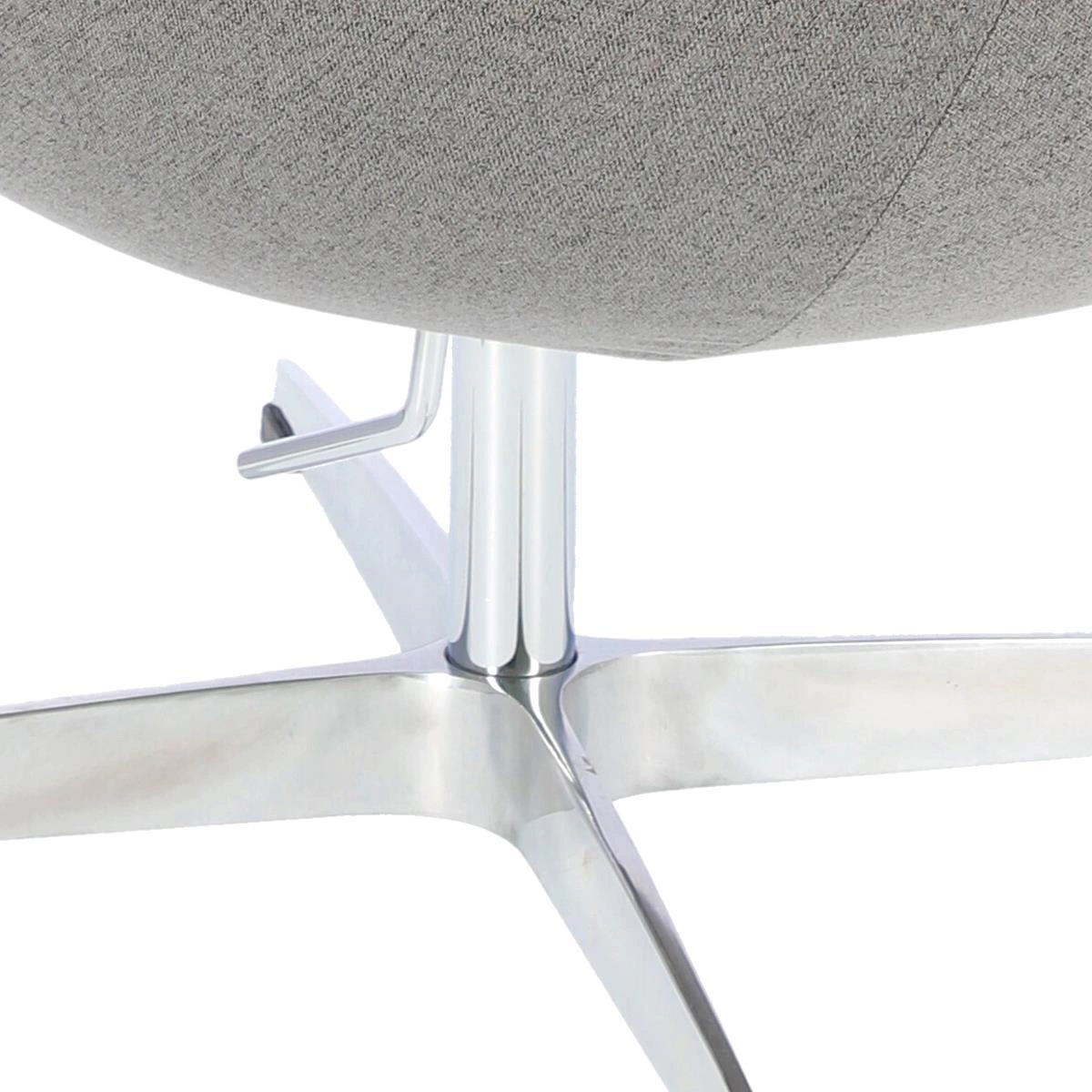 Unikátní silueta křesla, inspirovaná legendárním designem, je ideální volbou pro milovníky interiérů s osobitým charakterem. Matná látka ve světle šedé barvě perfektně ladí s chromovanou, centrální nohou, což vnáší do prostoru jemný lesk a eleganci. Křeslo ušák Jajo ve stylu glamour skvěle vynikne jak v prostorném obývacím pokoji, tak jako designové křeslo do kanceláře nebo čekárny, kde podtrhne moderní atmosféru místnosti.