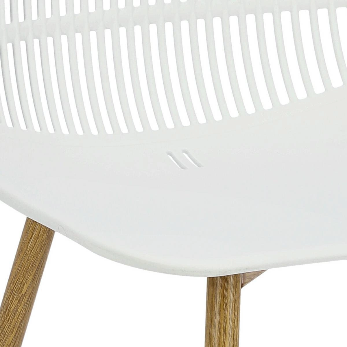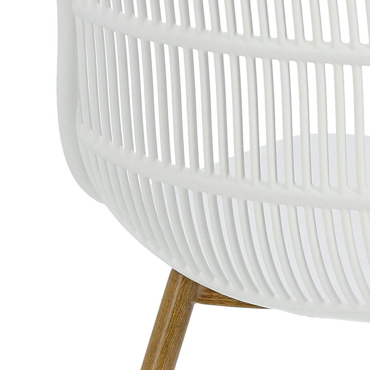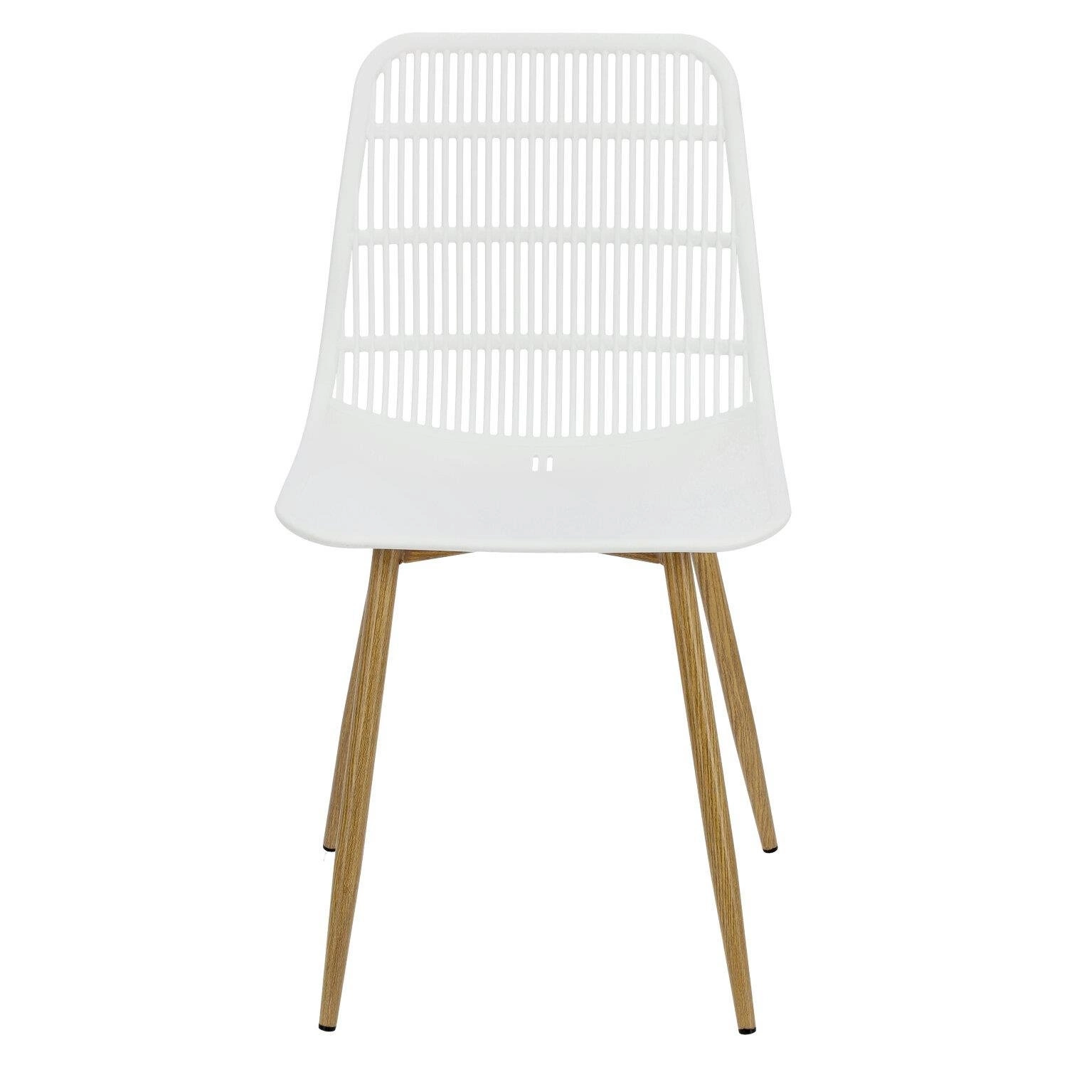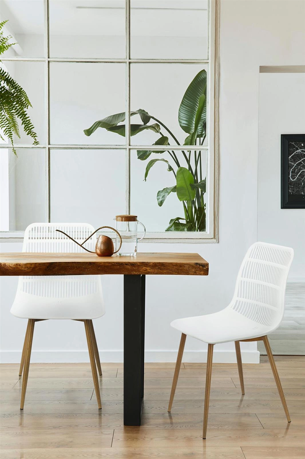 Židle Klaus byla navržena s důrazem na každodenní pohodlí – ať už při rodinných večeřích, nebo posezení s přáteli u stolu. Sedák z odolného plastu v nadčasově bílé barvě krásně ladí s přírodními kovovými nohami, které dodávají celé židli stabilitu i vizuální lehkost. Ažurové opěradlo podporuje správnou cirkulaci vzduchu, což oceníte zejména při delším sezení.