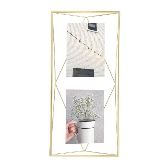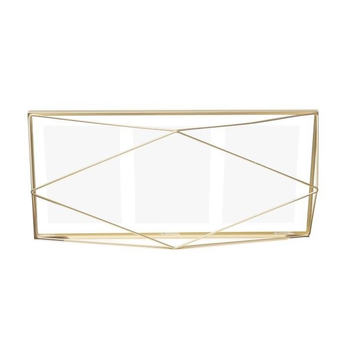 Multirám na fotografie zlatý Prisma Umbra je mimořádně efektní doplněk do interiéru, který spojuje kovovou, geometrickou konstrukci ve zlatém odstínu se skleněnými deskami a poskytuje prostor pro několik oblíbených snímků. Tento model o výšce 22,9 cm a hloubce 8 cm byl navržen s ohledem na aranžmá ve stylu glamour a jeho funkčnost umožňuje zavěšení na zeď i postavení na komodu nebo pracovní stůl. Prisma Umbra zaujme nejen originálním designem, ale i možností prezentace fotografií jedinečným způsobem – v podobě elegantního multirámu.