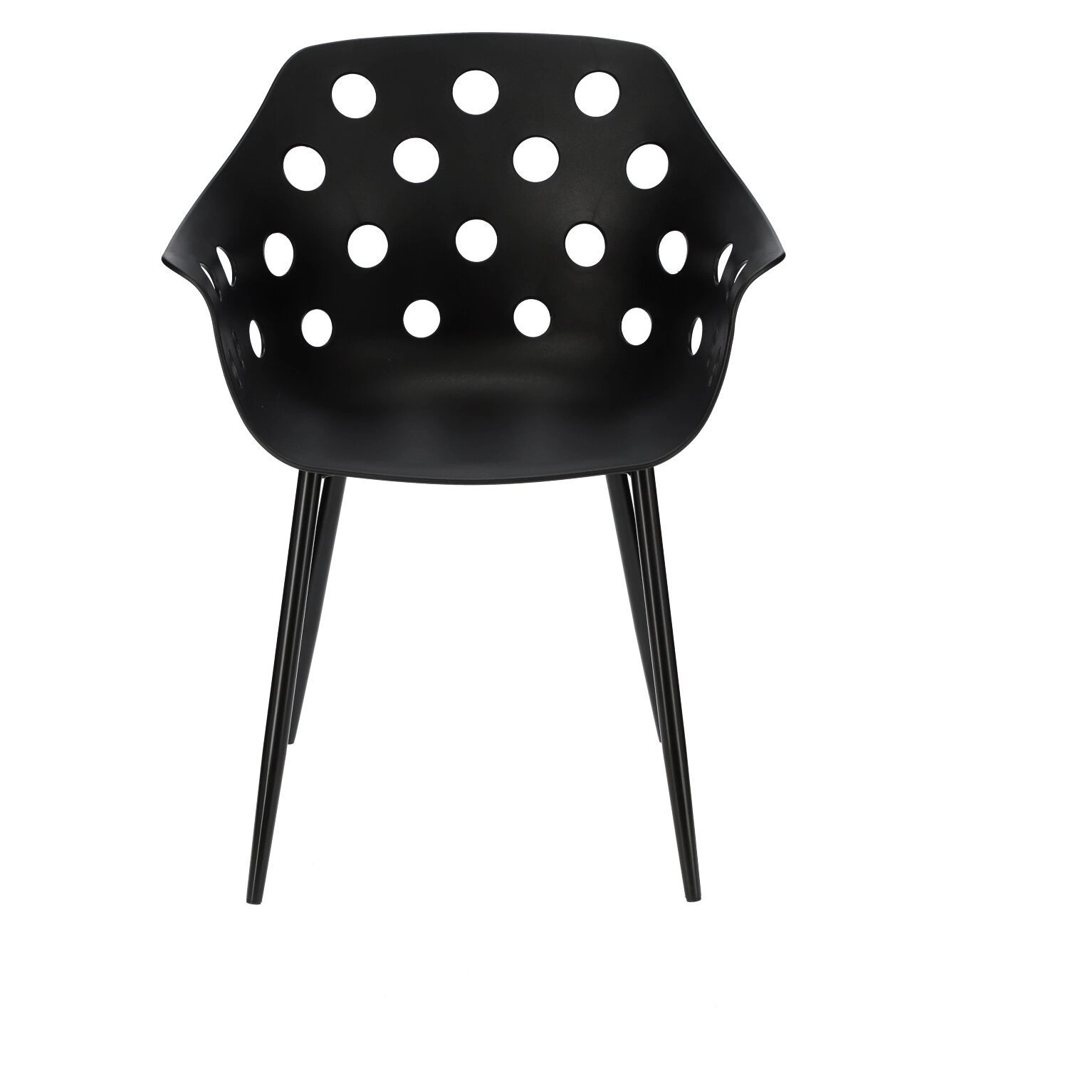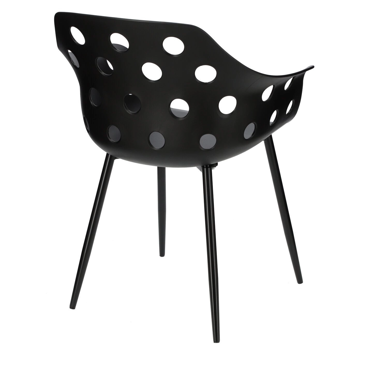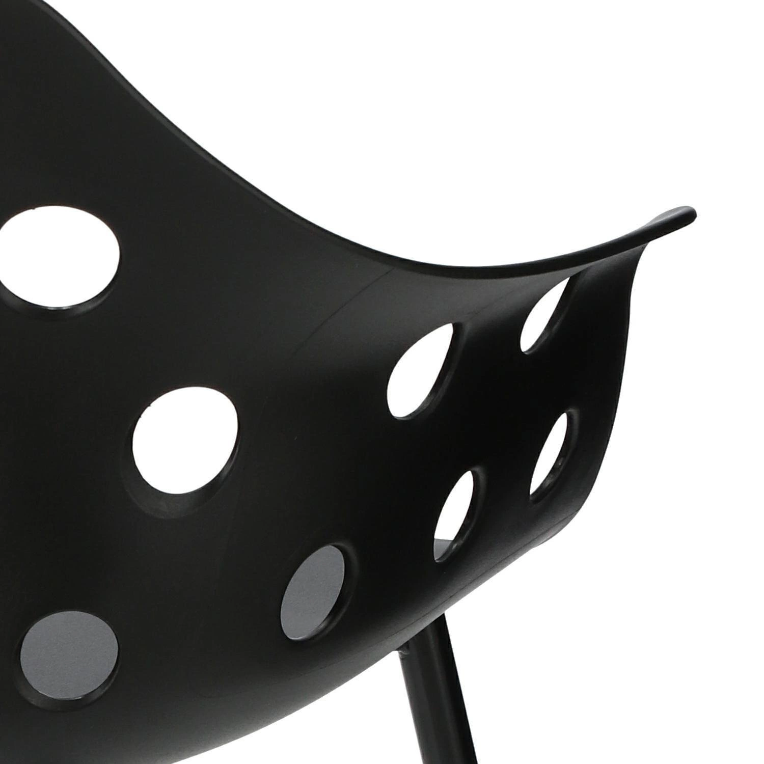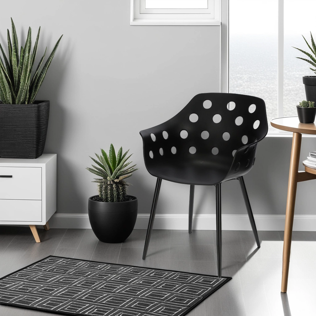 Židle Sajt od značky Intesi je skvělou volbou pro ty, kteří oceňují moderní styl, pohodlí a dlouhou životnost. Vyrobena z odolného plastu v hluboké černé barvě a podepřena stabilní kovovou základnou, perfektně se hodí jako jídelní židle, ale také do kuchyně nebo na terasu. Profilované skořepinové sedadlo s područkami poskytuje komfort i při delším sezení, zatímco kompaktní rozměry (šířka 63 cm, hloubka 58 cm, výška 61 cm) umožňují snadné začlenění židle do různých interiérů.