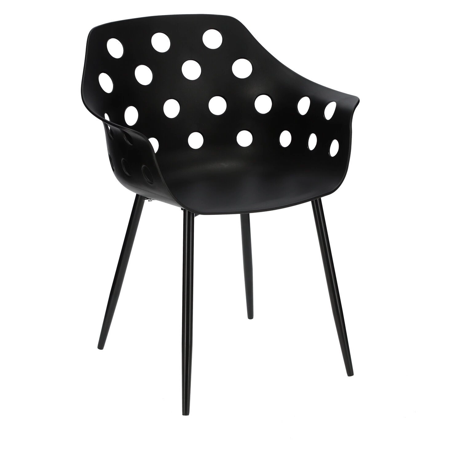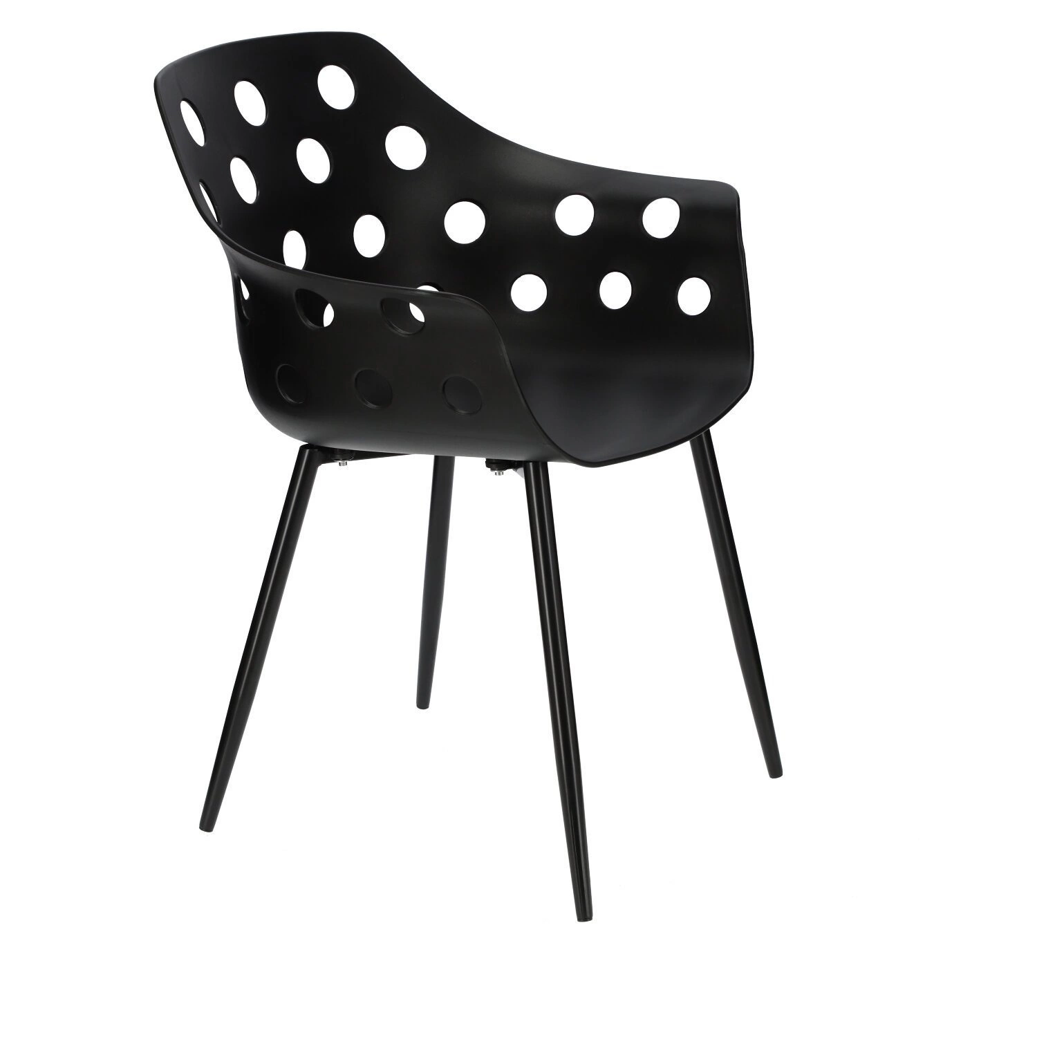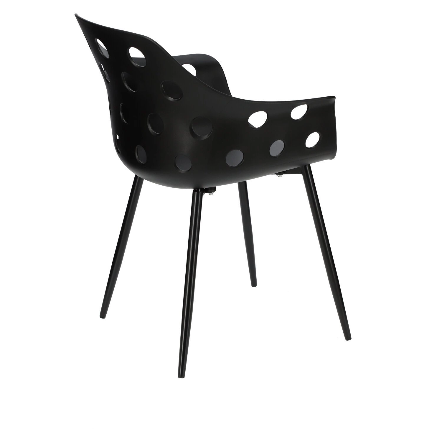 Židle Sajt od značky Intesi je skvělou volbou pro ty, kteří oceňují moderní styl, pohodlí a dlouhou životnost. Vyrobena z odolného plastu v hluboké černé barvě a podepřena stabilní kovovou základnou, perfektně se hodí jako jídelní židle, ale také do kuchyně nebo na terasu. Profilované skořepinové sedadlo s područkami poskytuje komfort i při delším sezení, zatímco kompaktní rozměry (šířka 63 cm, hloubka 58 cm, výška 61 cm) umožňují snadné začlenění židle do různých interiérů.