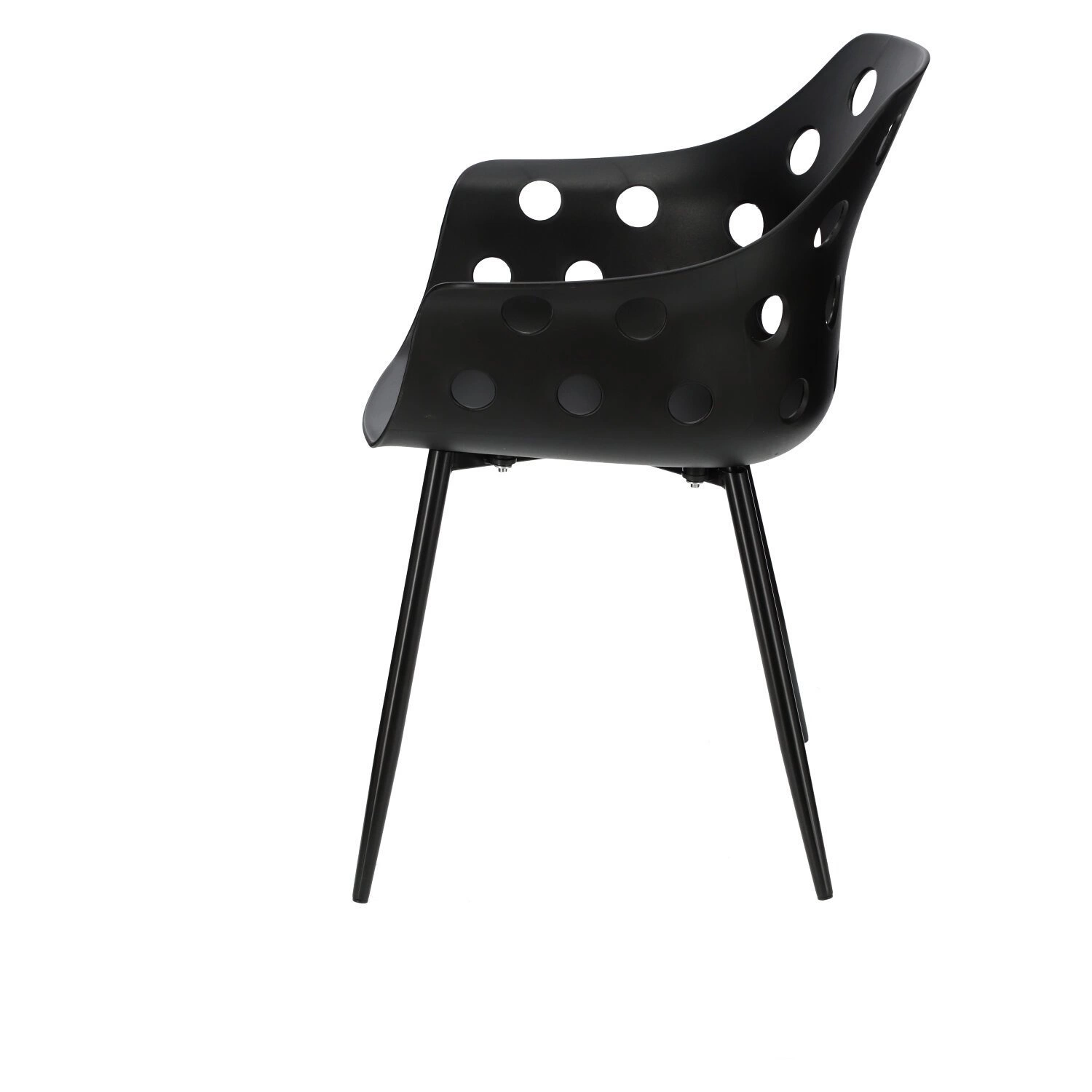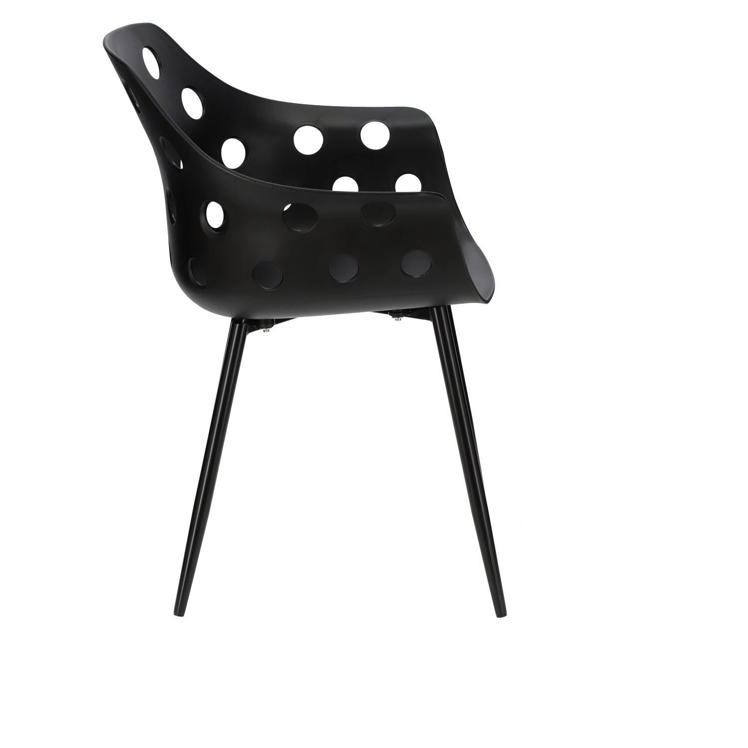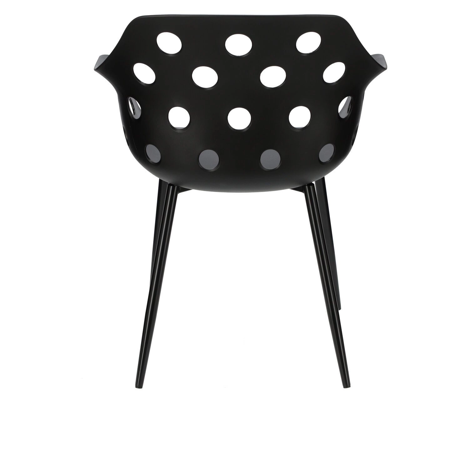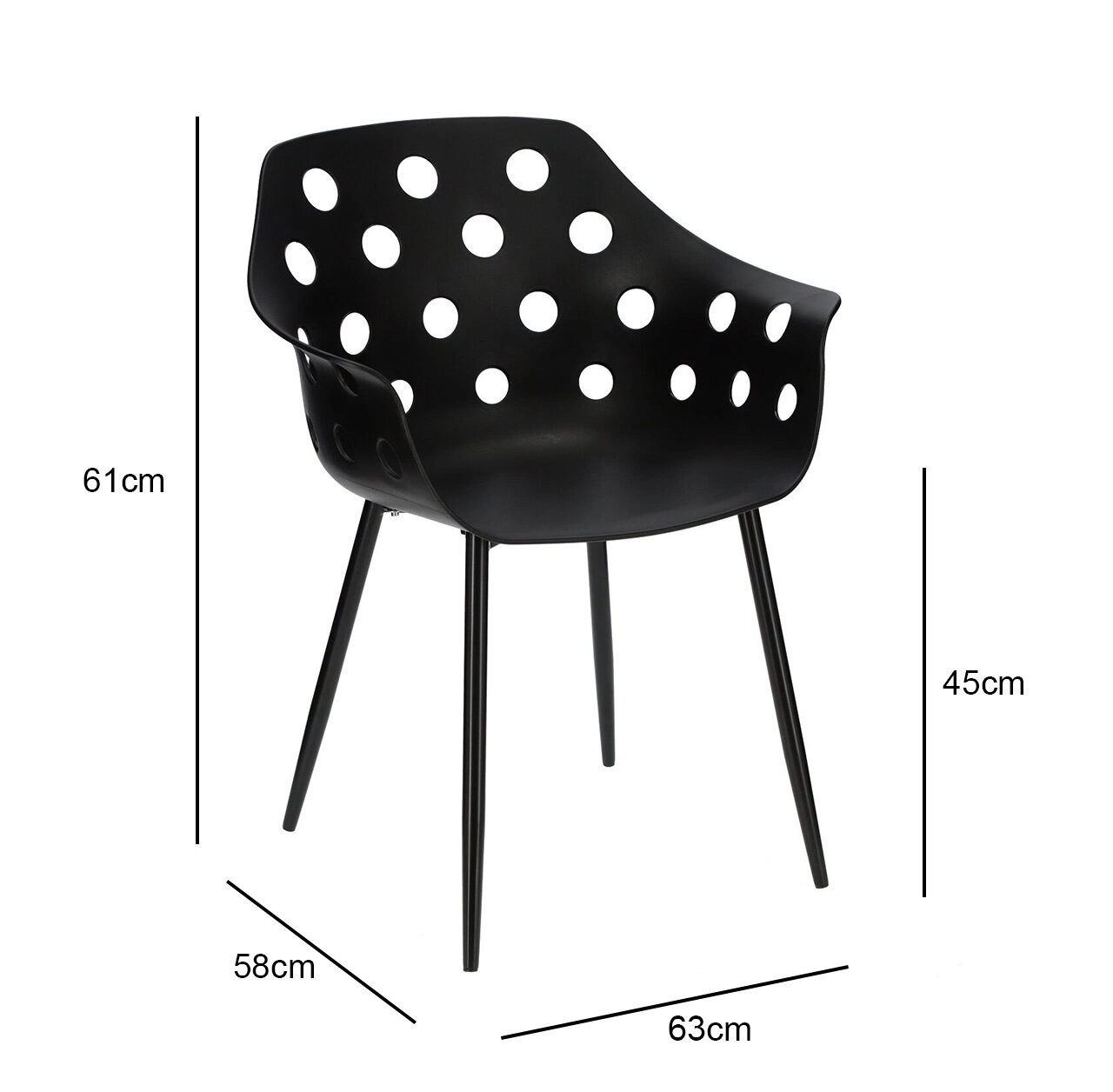 Židle Sajt od značky Intesi je skvělou volbou pro ty, kteří oceňují moderní styl, pohodlí a dlouhou životnost. Vyrobena z odolného plastu v hluboké černé barvě a podepřena stabilní kovovou základnou, perfektně se hodí jako jídelní židle, ale také do kuchyně nebo na terasu. Profilované skořepinové sedadlo s područkami poskytuje komfort i při delším sezení, zatímco kompaktní rozměry (šířka 63 cm, hloubka 58 cm, výška 61 cm) umožňují snadné začlenění židle do různých interiérů.