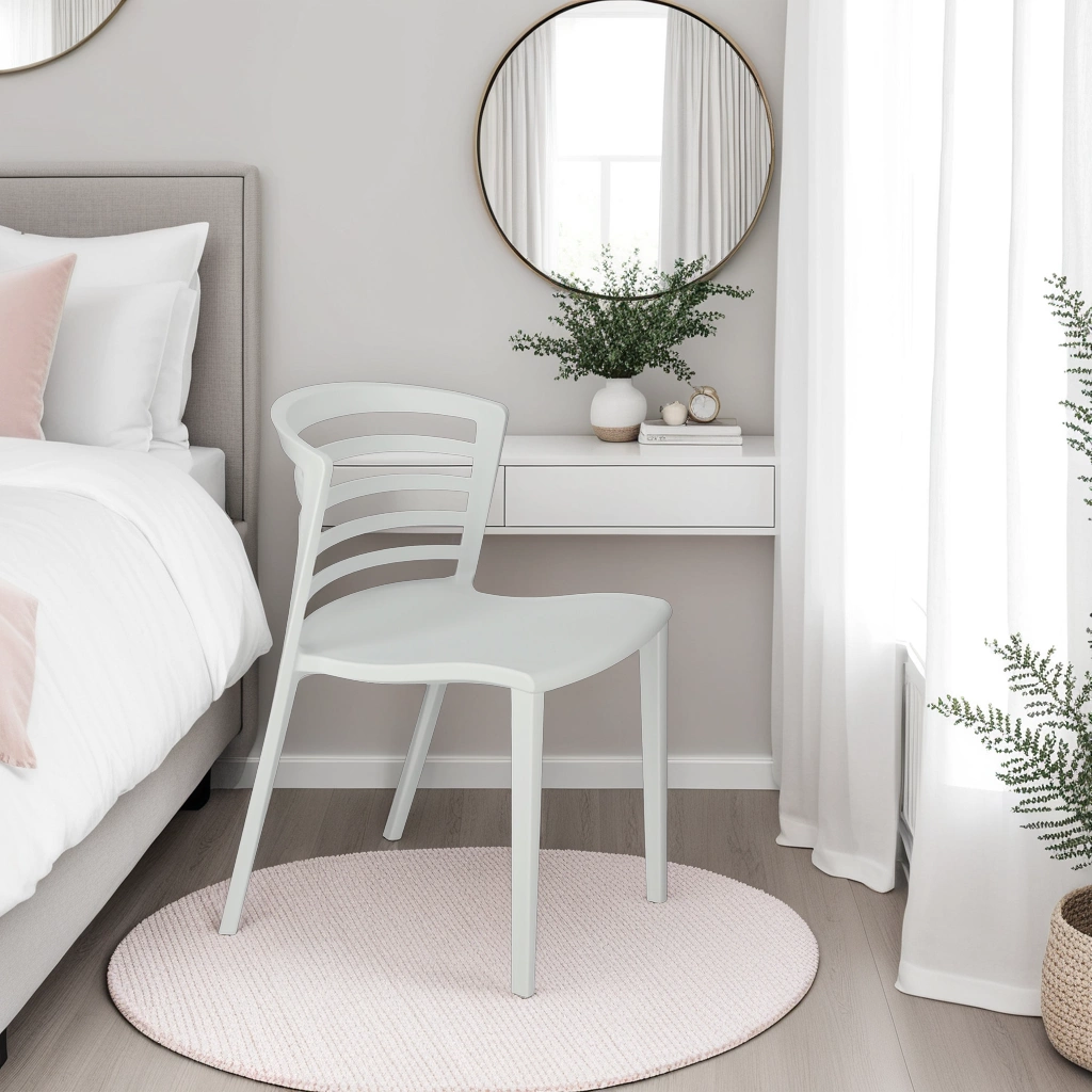 Muna je ideální volbou pro všechny, kteří hledají bílé, moderní židle do kuchyně, jídelny nebo na venkovní použití. Díky univerzálnímu designu snadno zapadne do různých interiérů a její lehká konstrukce umožňuje snadné přemisťování tam, kde ji právě potřebujete. Je to řešení pro ty, kteří ocení praktičnost, jednoduchost a dlouhou životnost – jak při každodenním používání v domácnosti, tak v komerčních prostorách, jako jsou restaurační zahrádky či banketní sály.