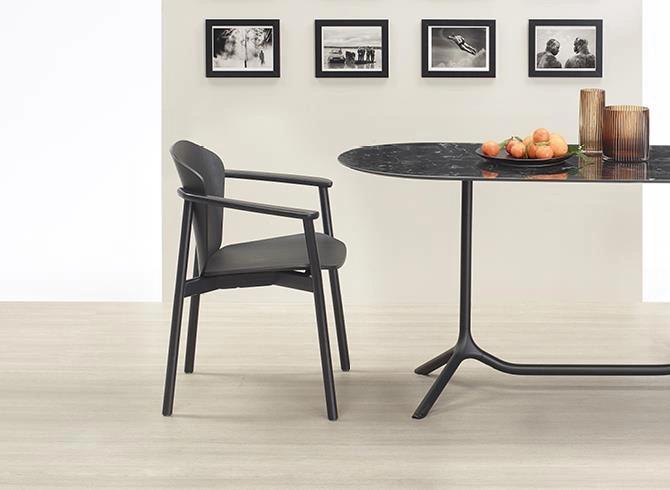 Ergonomické sedadlo o šířce 60 cm a područky poskytují stabilní oporu i dostatek prostoru pro volnost pohybu během delších posezení u stolu. Díky dobře tvarovanému opěradlu si užijete pohodlí, ať už trávíte čas s rodinou, nebo vedete rozhovory v restauraci. Židle FINN nevyžaduje montáž, což umožňuje okamžité použití ihned po doručení.