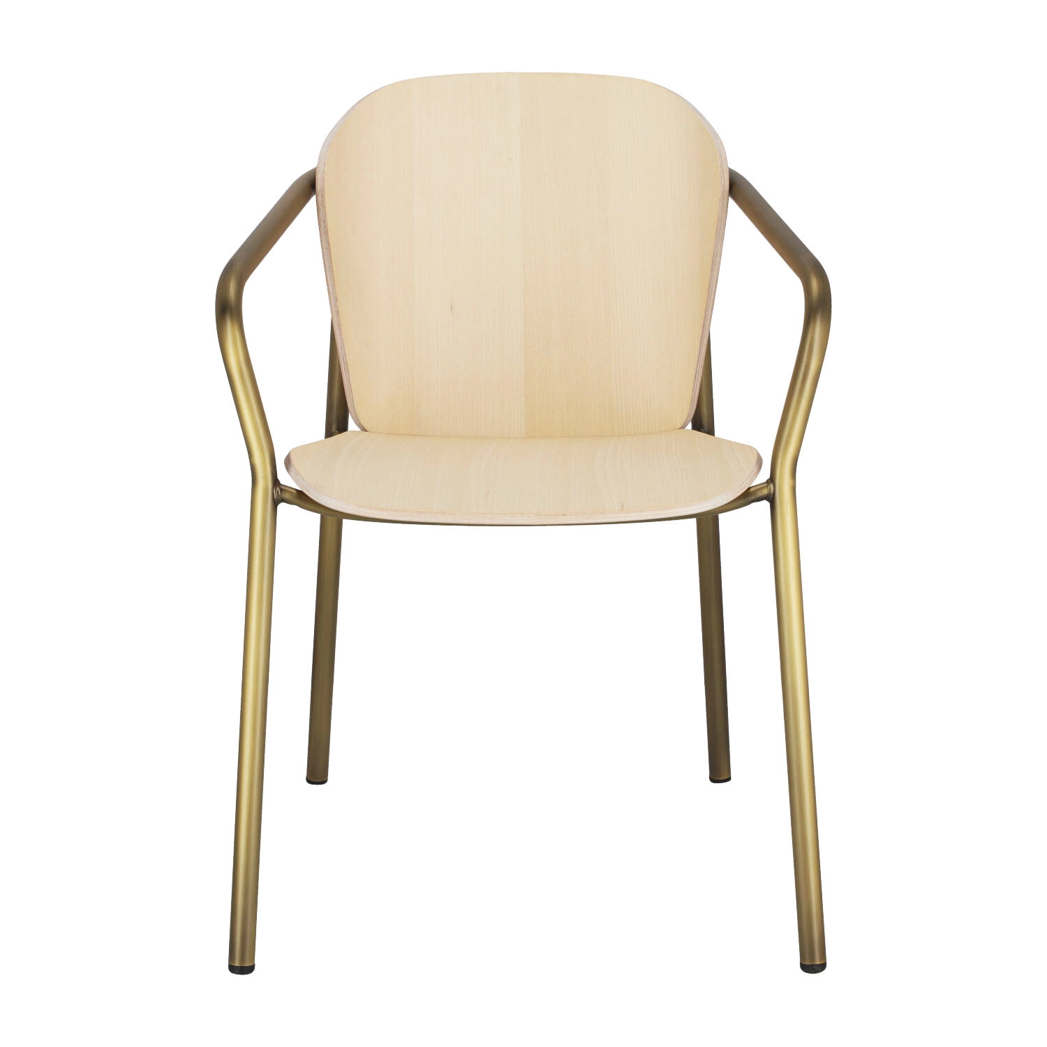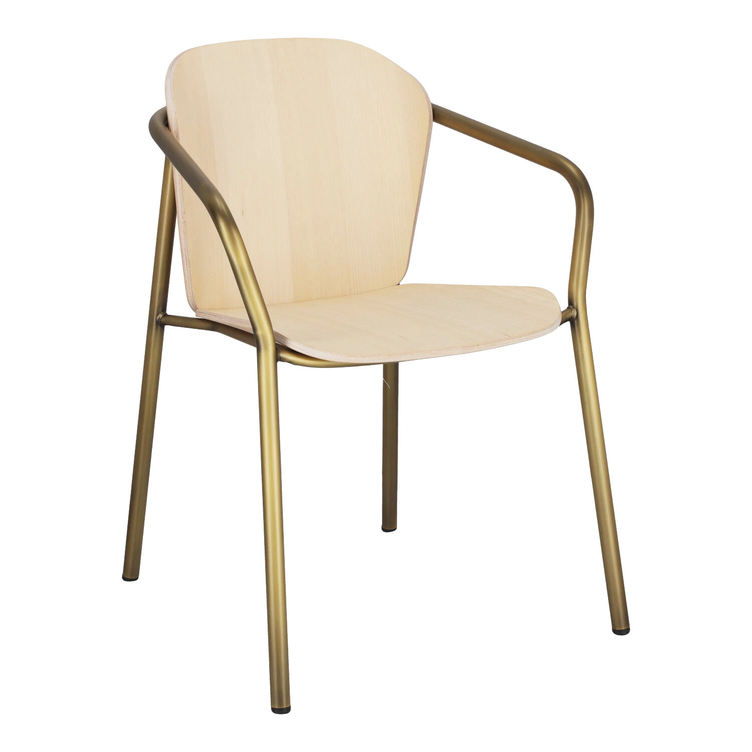 Jídelní židle Finn dřevěná s područkami na zlatých nohách moderní SCAB Design