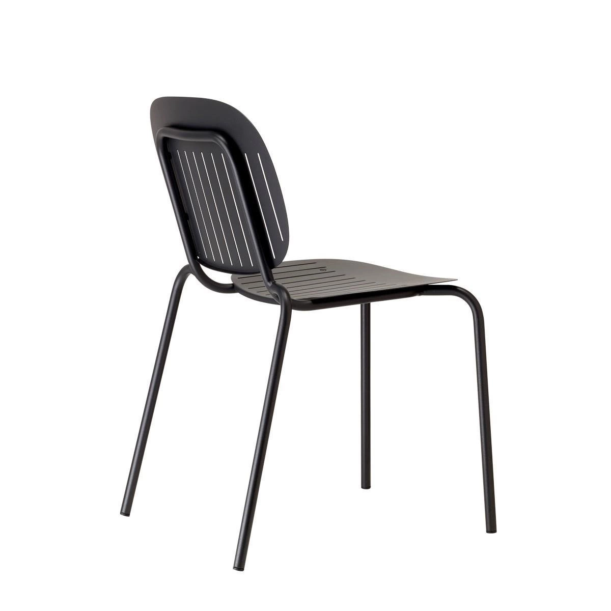 Minimalistický tvar a jednotná černá barva zaručují, že zahradní židle SI-SI skvěle zapadne do současných venkovních aranžmá. Kovová konstrukce podtrhuje industriální vzhled a zároveň dodává židli lehkost. Tato kovová zahradní židle vypadá výborně samostatně, ale i v sestavě u zahradního stolu nebo na terase.