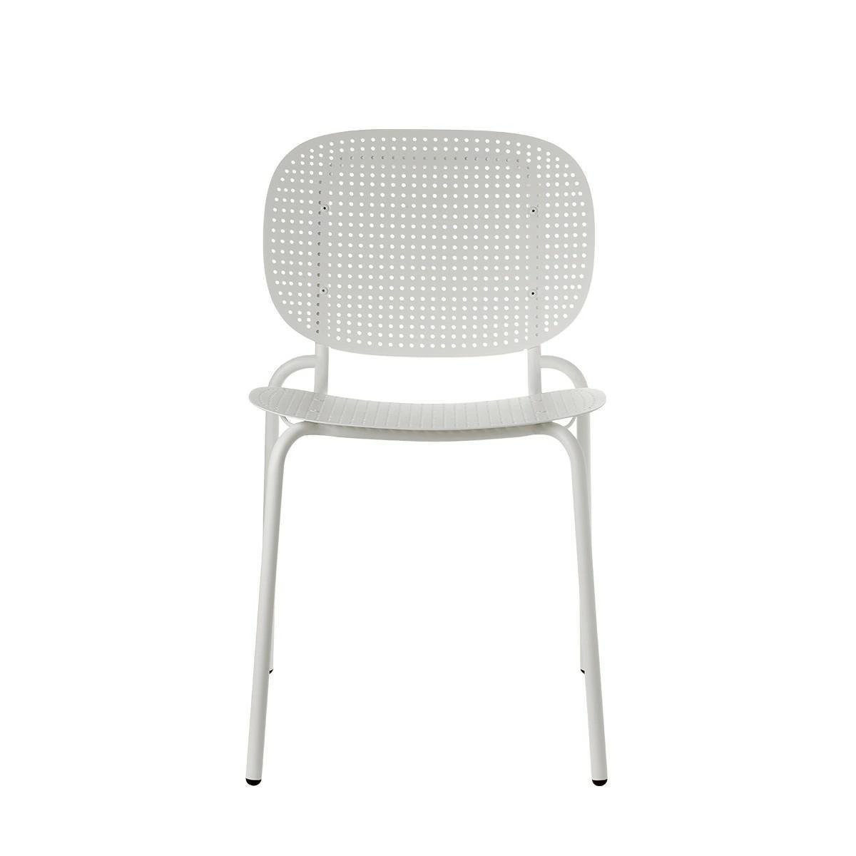 Si-Si Dots od SCAB Design zaujme jednoduchou, moderní siluetou a jemným, perforovaným vzorem sedáku. Bílý odstín židle prosvětluje prostor a přináší do interiéru svěžest i pocit lehkosti. Kovová konstrukce zaručuje odolnost vůči proměnlivému počasí, takže židle je ideální pro venkovní použití – na terasu, balkon nebo do zahrady. Díky univerzálnímu stylu ji snadno začleníte i do moderní jídelny nebo kuchyně.
