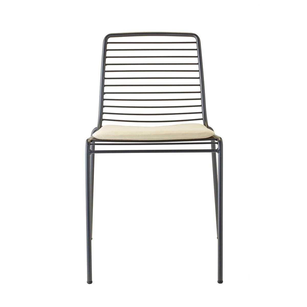 Model Summer v antracitové barvě perfektně zapadá do moderních exteriérových aranžmá. Vzdušná, drátěná konstrukce zajišťuje nejen lehký vzhled, ale také rychlý odvod vody po dešti, což umožňuje rychlé vysychání sedáku. Minimalistický design židle skvěle ladí jak s dřevěným stolem, tak s betonovými či kamennými doplňky a vytváří útulnou i stylovou relaxační zónu na čerstvém vzduchu.