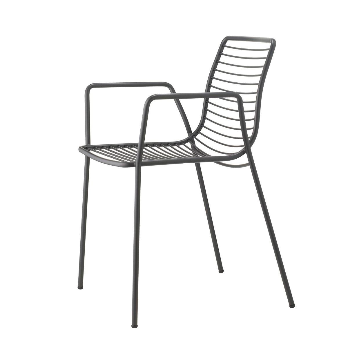 Minimalistický tvar a stylová antracitová barva dělají z kovové židle Summer ideální doplněk pro současné trendy zahradního nábytku. Otevřená, drátěná konstrukce je nejen vizuálně zajímavá, ale také dodává židli lehkost a podtrhuje její moderní charakter. Židle s područkami se postará o vaše pohodlí při posezení u stolu nebo rodinných obědech na čerstvém vzduchu.