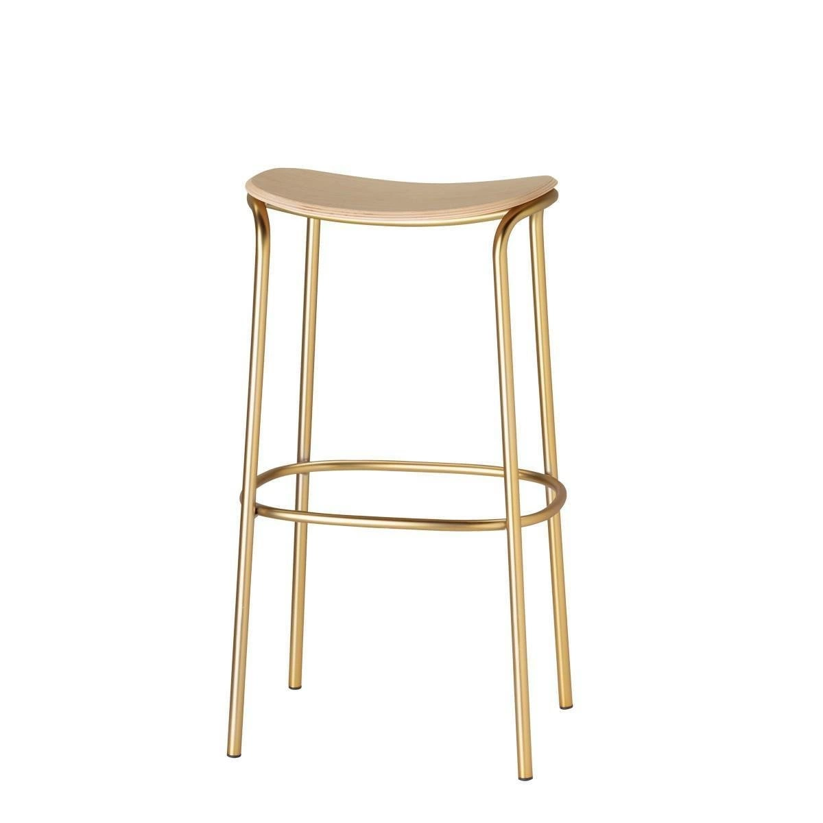 Židle barová Trick Wood 75cm dub, zlatá podnož