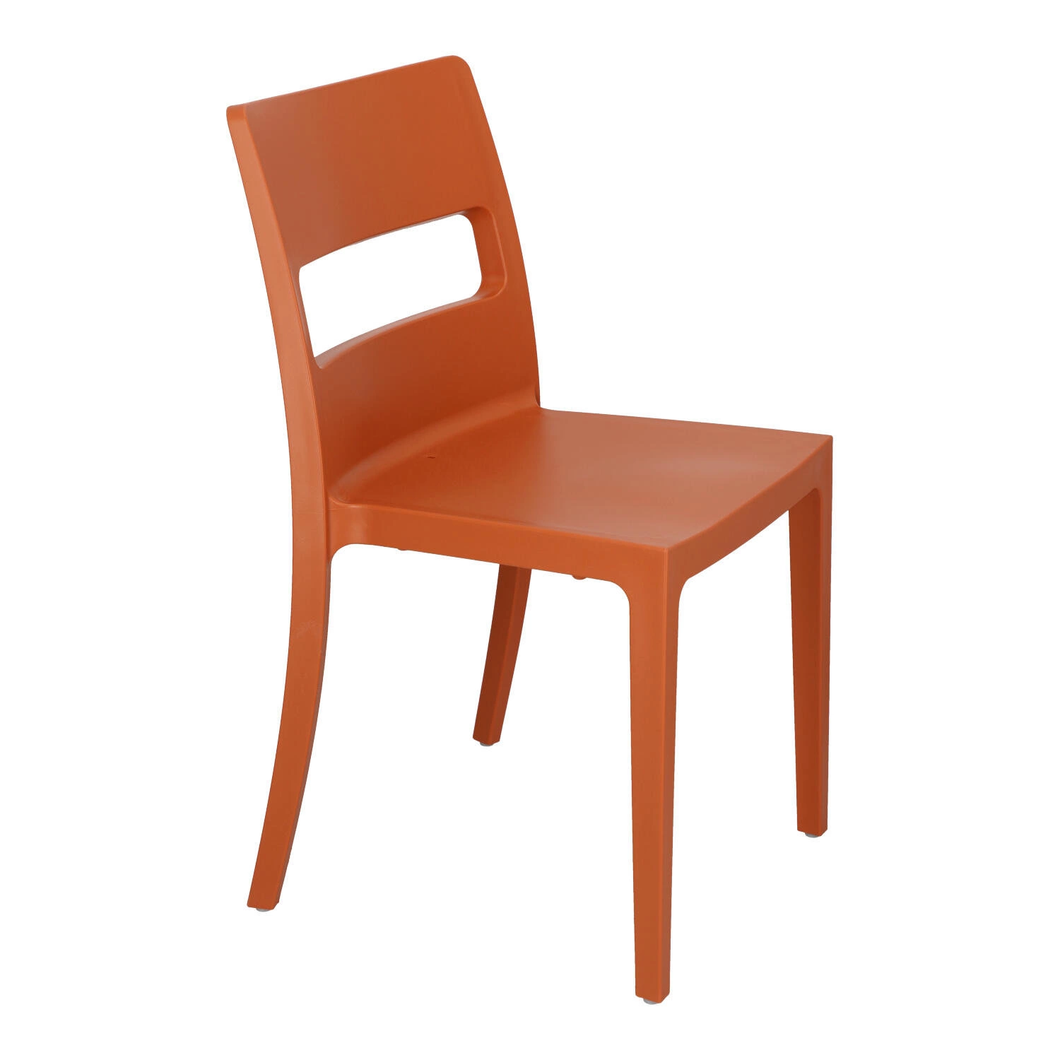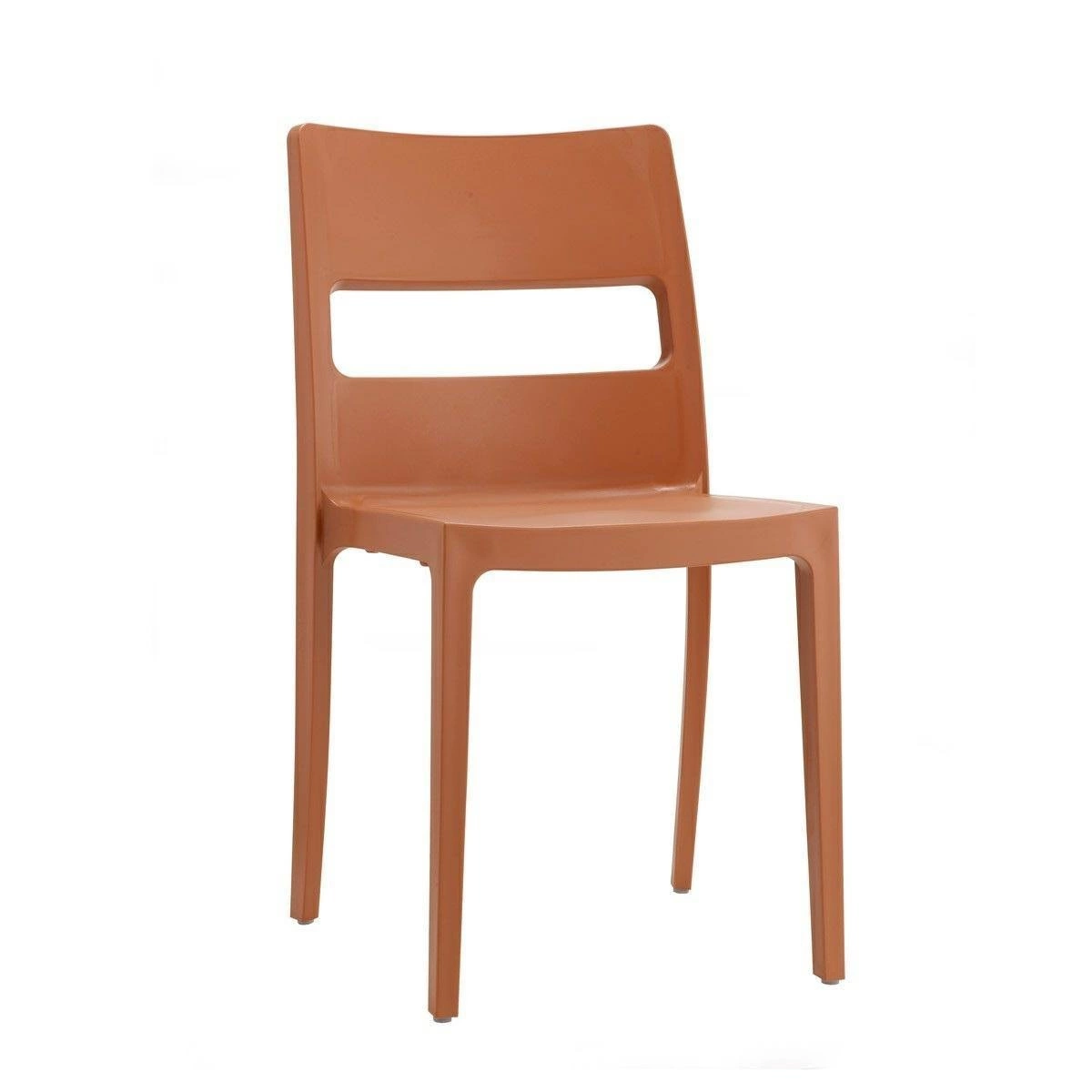 Zahradní židle Sai od značky SCAB Design je moderní, stohovatelná židle vyrobená z odolného plastu v sytě tmavě oranžové barvě. Je navržena speciálně pro použití ve venkovních prostorách – na zahradě, terase nebo během venkovních akcí – a také v komerčních prostorách, jako jsou banketové sály či restaurace. Kompaktní rozměry (výška 82 cm, šířka 48 cm, hloubka 51 cm) a pohodlné sedadlo ve výšce 46 cm zaručují komfort i při delším sezení.