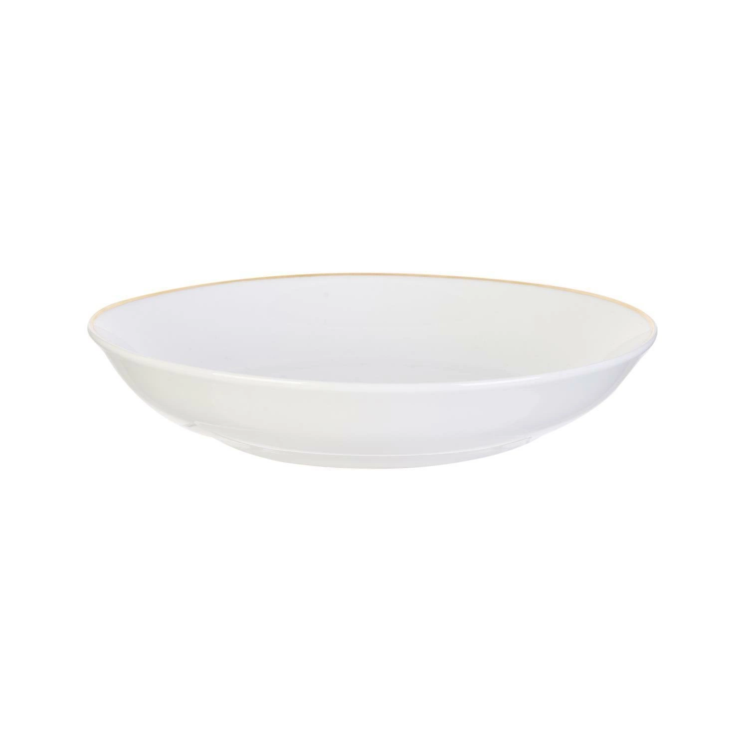talíř Pearl Gold je klasický, jednoduchý design, který se hodí pro každou příležitost, každý den i svátek. Skvěle se hodí do polévek nebo těstovinových pokrmů. Talíř je vyroben z bílého porcelánu a na okraji má jemný zlatý akcent. Lze mýt v myčce nádobí.